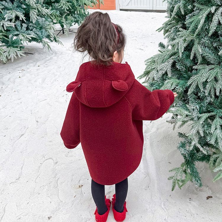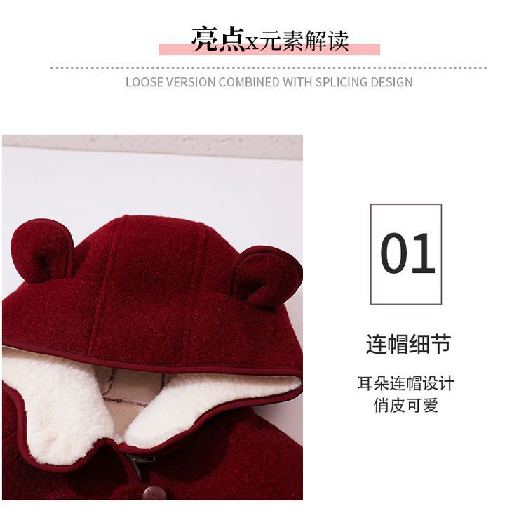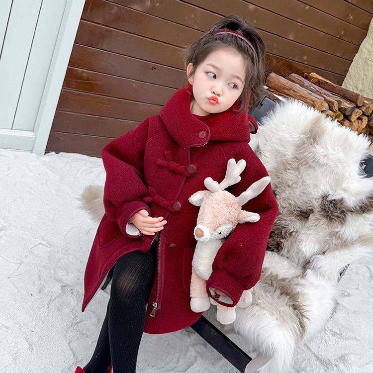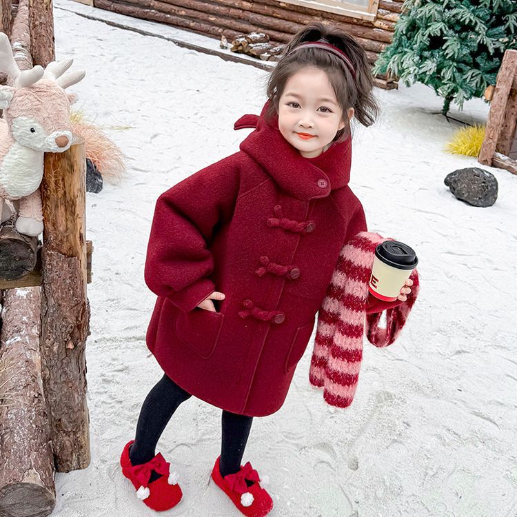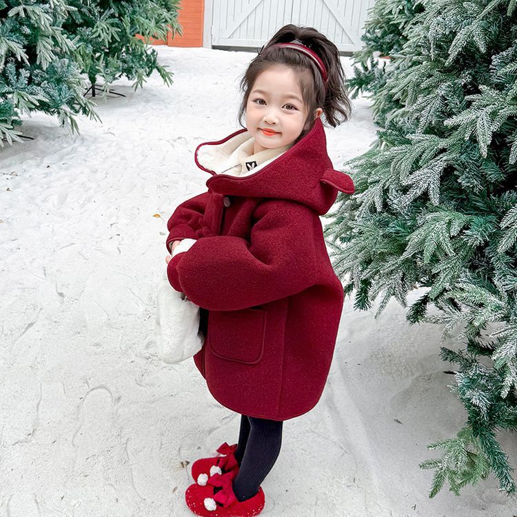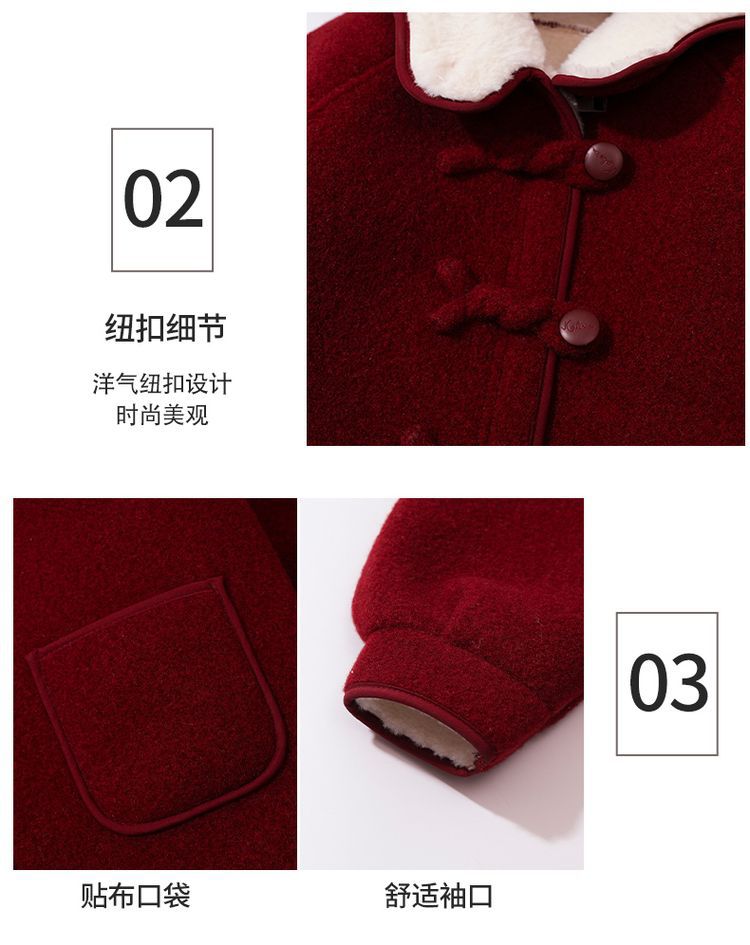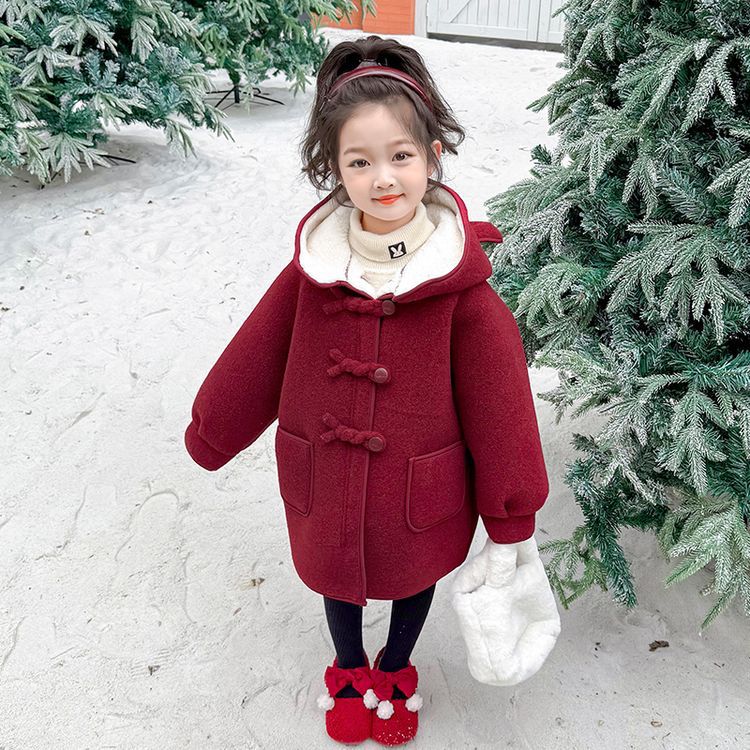 Детская шершавая верхняя одежда для девочек, осень и зима 2025, новогодняя одежда для детей, красная шершавая куртка с флисовой подкладкой, средней длины