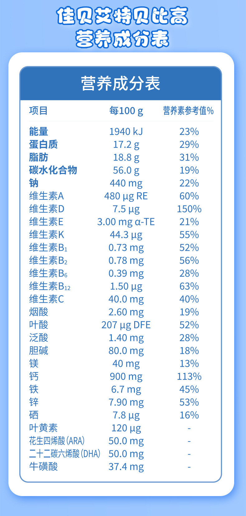 Jiabeate Beibi Высокий колострум Щелочной белок Формула для детей Козье молоко 400г