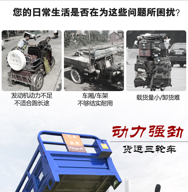 Бензиновый трицикл, трехколесный мотоцикл, для домашнего и сельскохозяйственного использования, водяное охлаждение, экспорт, электронный впрыск топлива, заднее сиденье, максимальная грузоподъемность