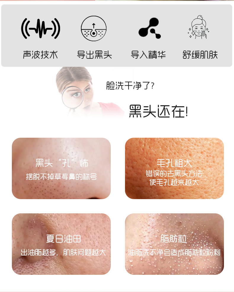 Домашний скребок с супер-вибрационными волнами для очистки пор, инструмент для удаления черных точек, ручное очищающее устройство