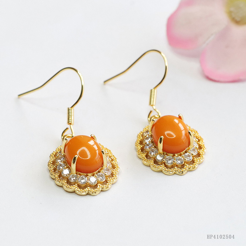 Серьги Yu из натурального куриного жира Желтые старые пчелиные восковые серьги Янтарные серьги с зажимом Дворцовый стиль Оптовая продажа HP4102504