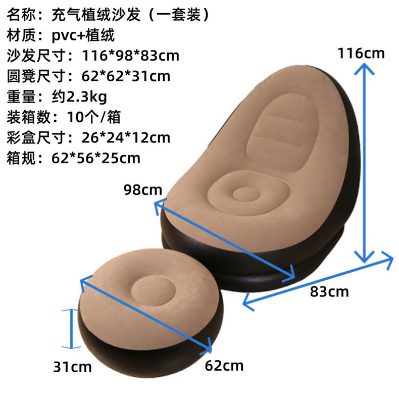 Кросс-бордный ленивый надувной диван складной реклайнер для улицы с комбинацией педалей и флокированным диваном