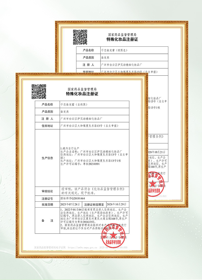 Специальное название косметического продукта Qianlian hair dye cream (natural black)