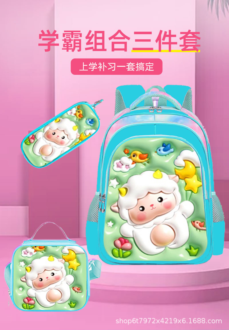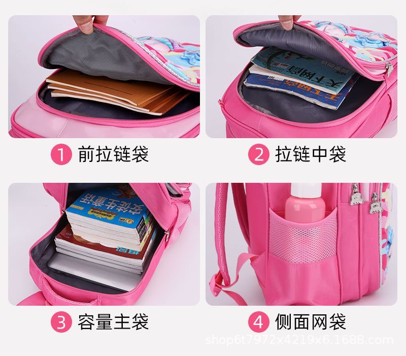 Оптовая продажа мультяшного детского расширяемого яркого кожаного рюкзака для студентов с тележкой, трехпредметный рюкзак для школьников