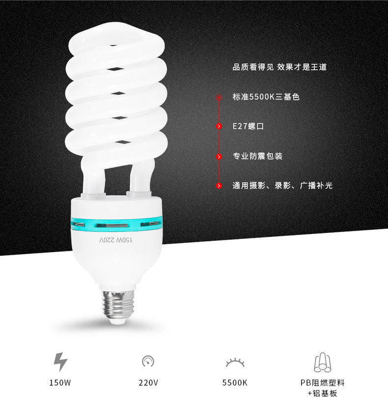 Фотографическая лампа 150W белый свет энергосберегающая 5500K трёхцветная профессиональная модельная лампа