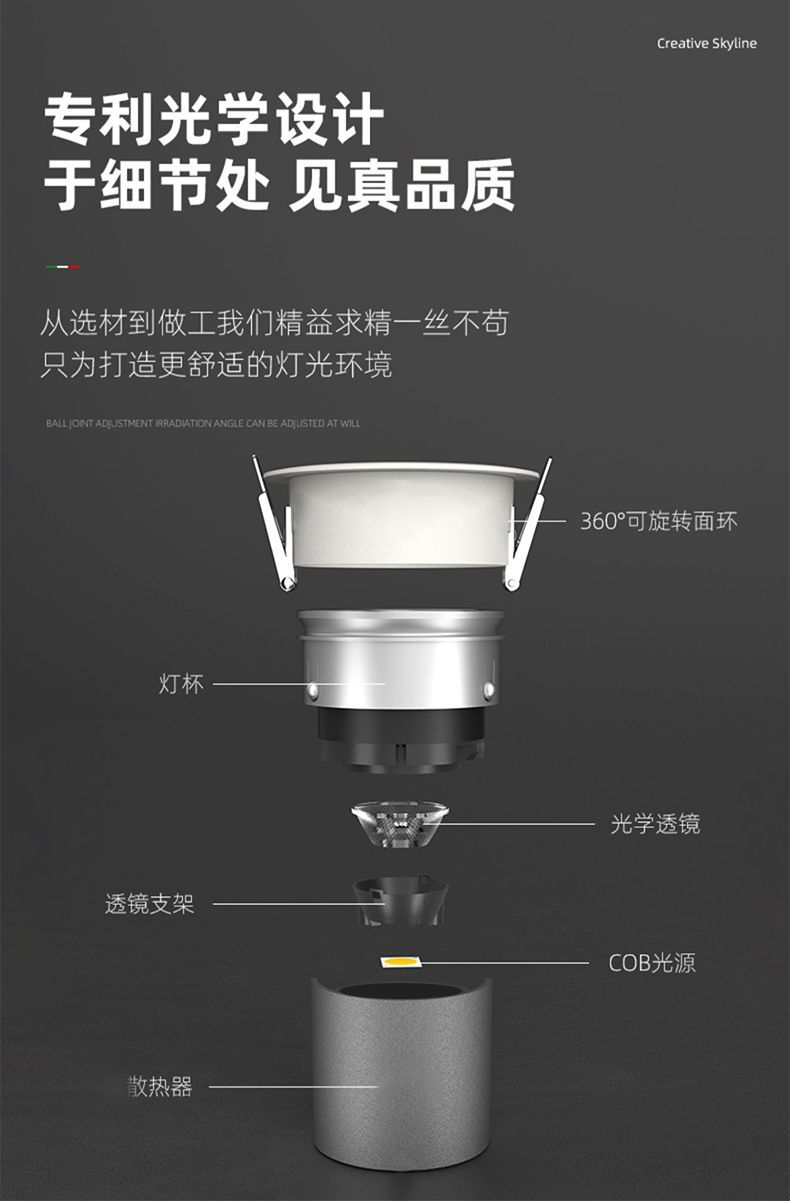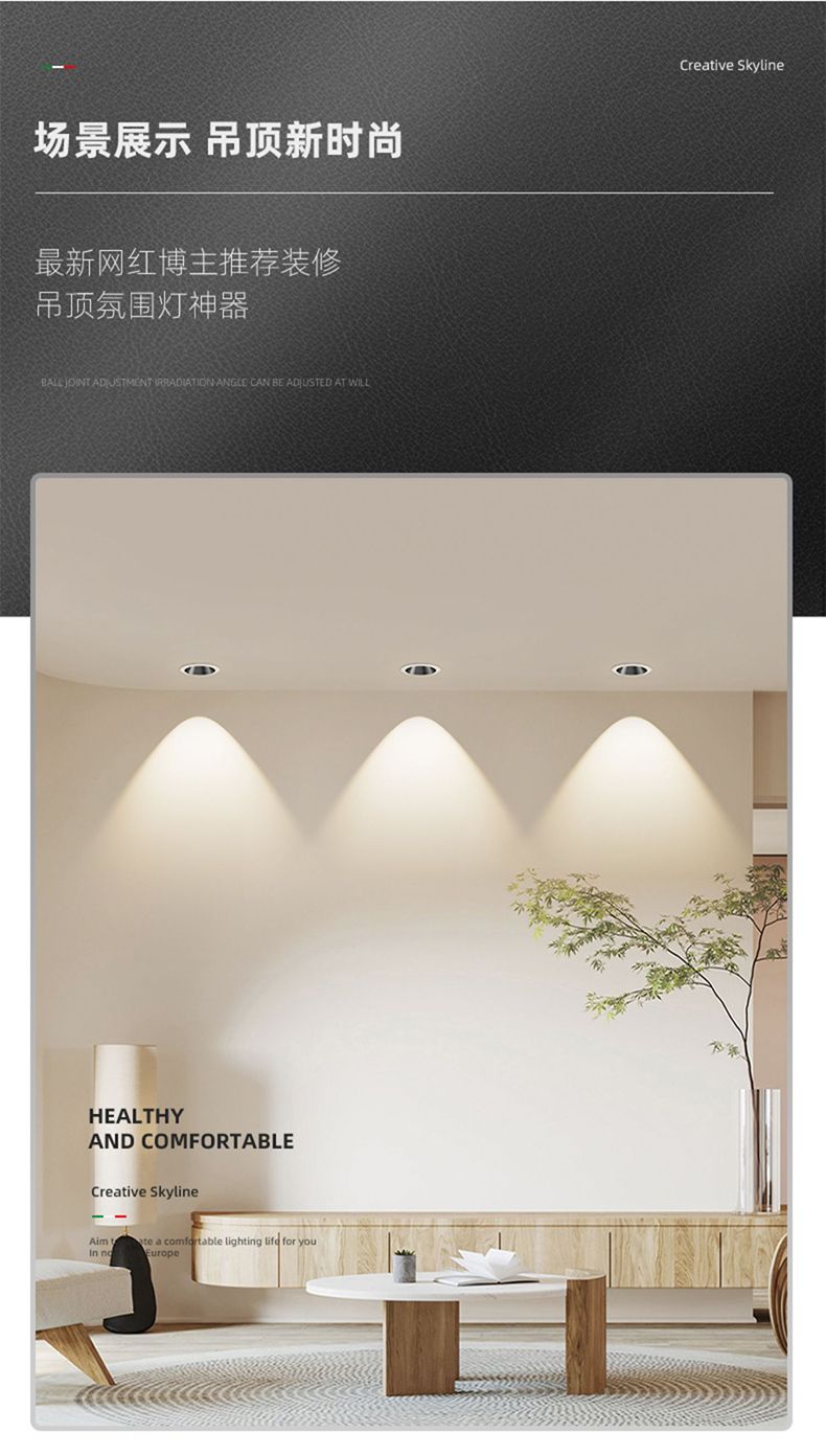 Полноспектральный глубокий антибликовый прожектор Cob встроенный светодиодный точечный светильник полноспектральный малый настенный светильник без основного света