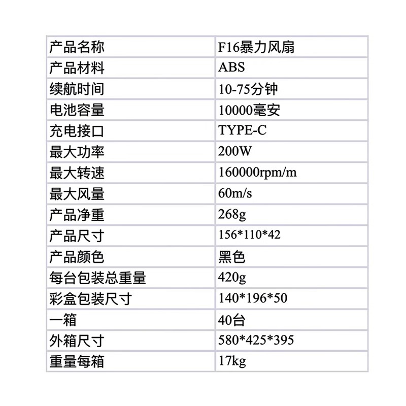 ![]() | 160k to 10000ma battery violent turbine fan | 2шт: ¥128.00, 50шт: ¥105.00, 500шт: ¥99.00 | 10 | 5633114492614 |