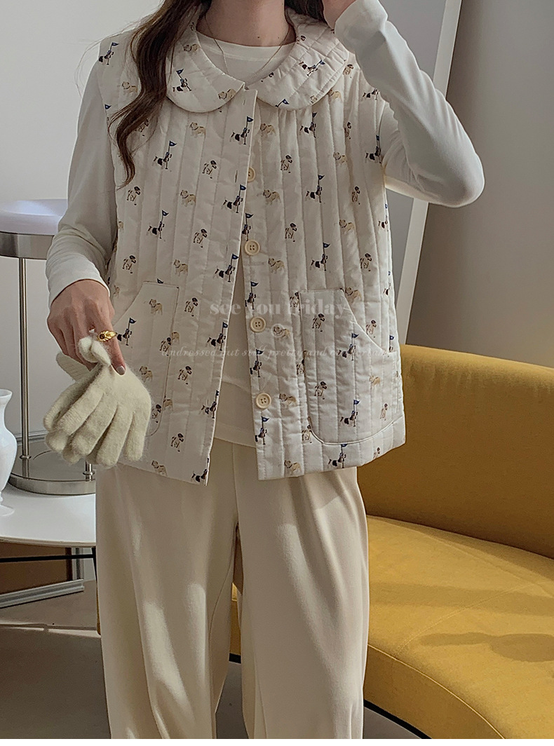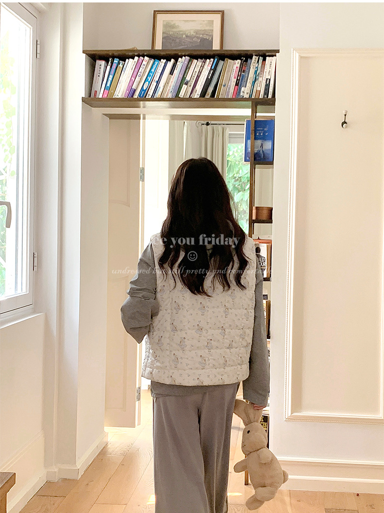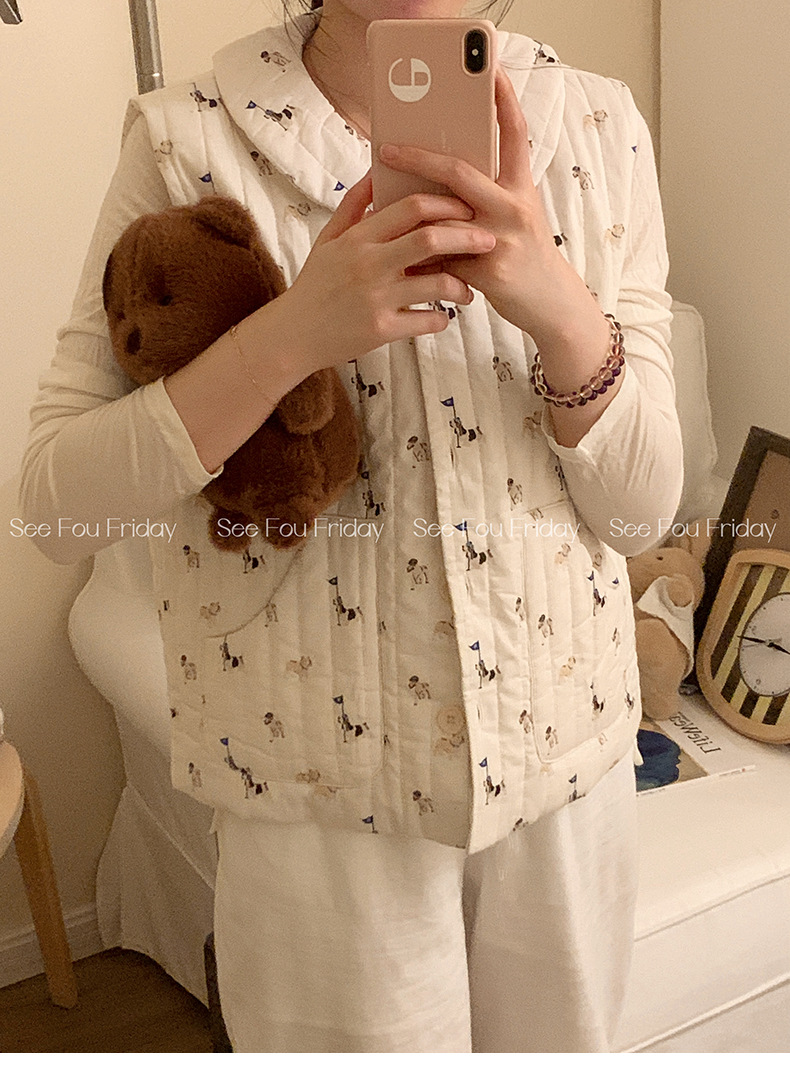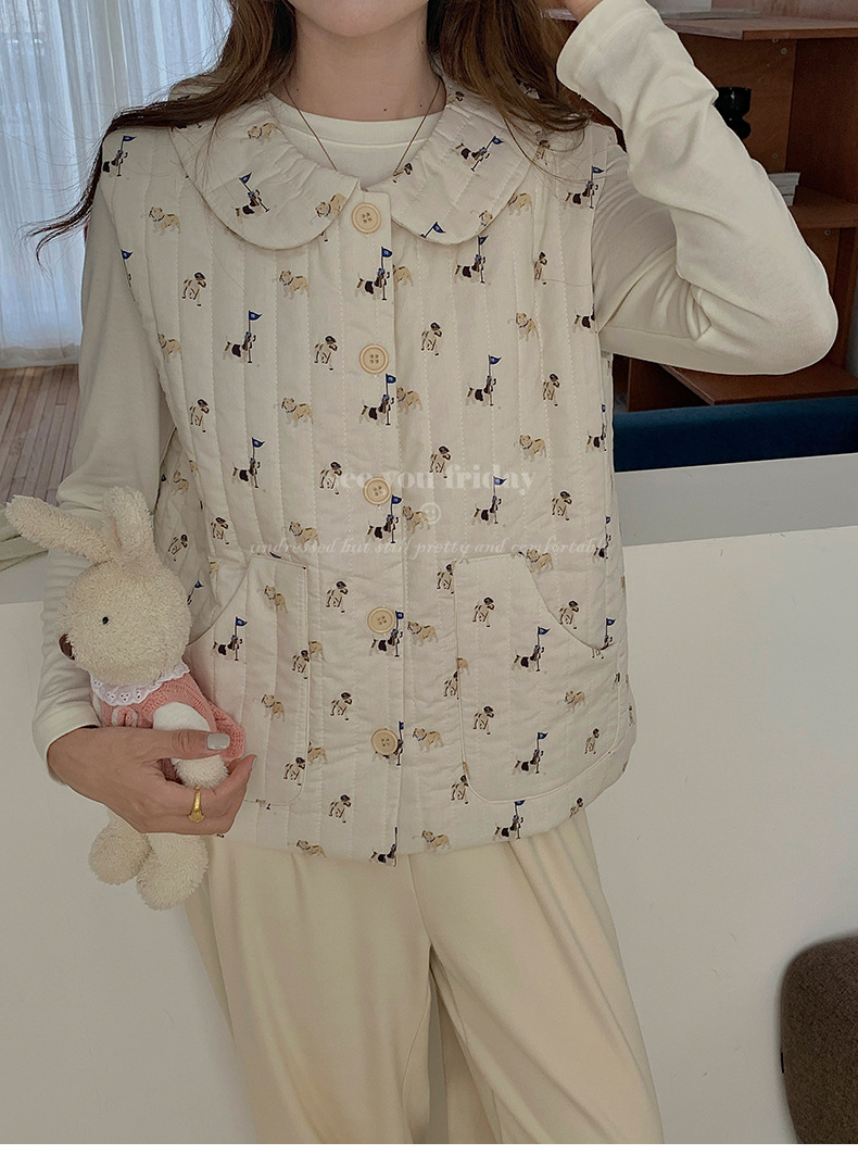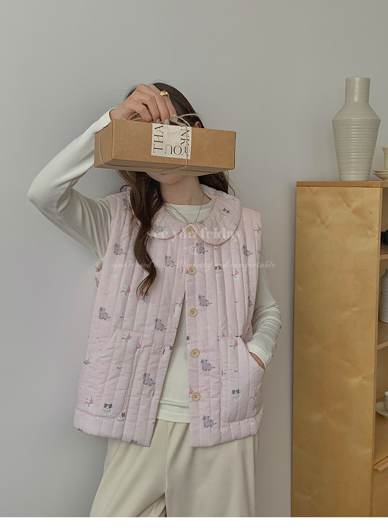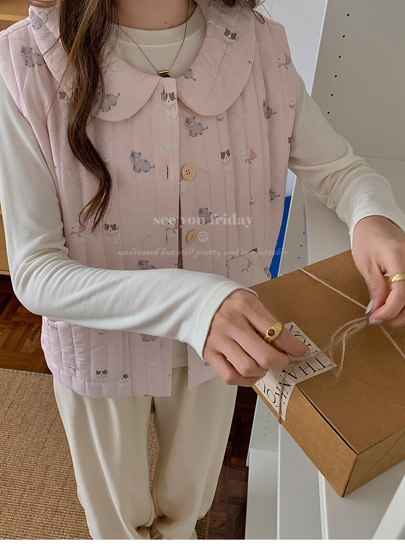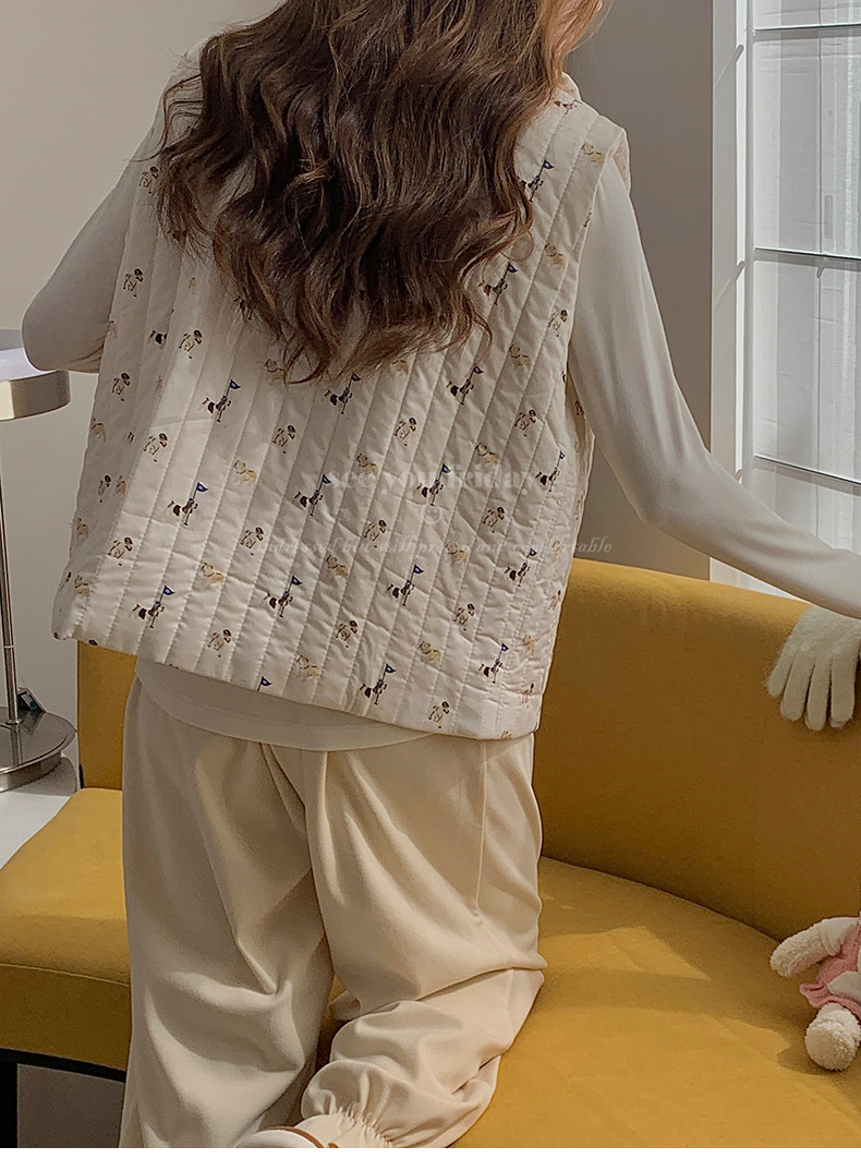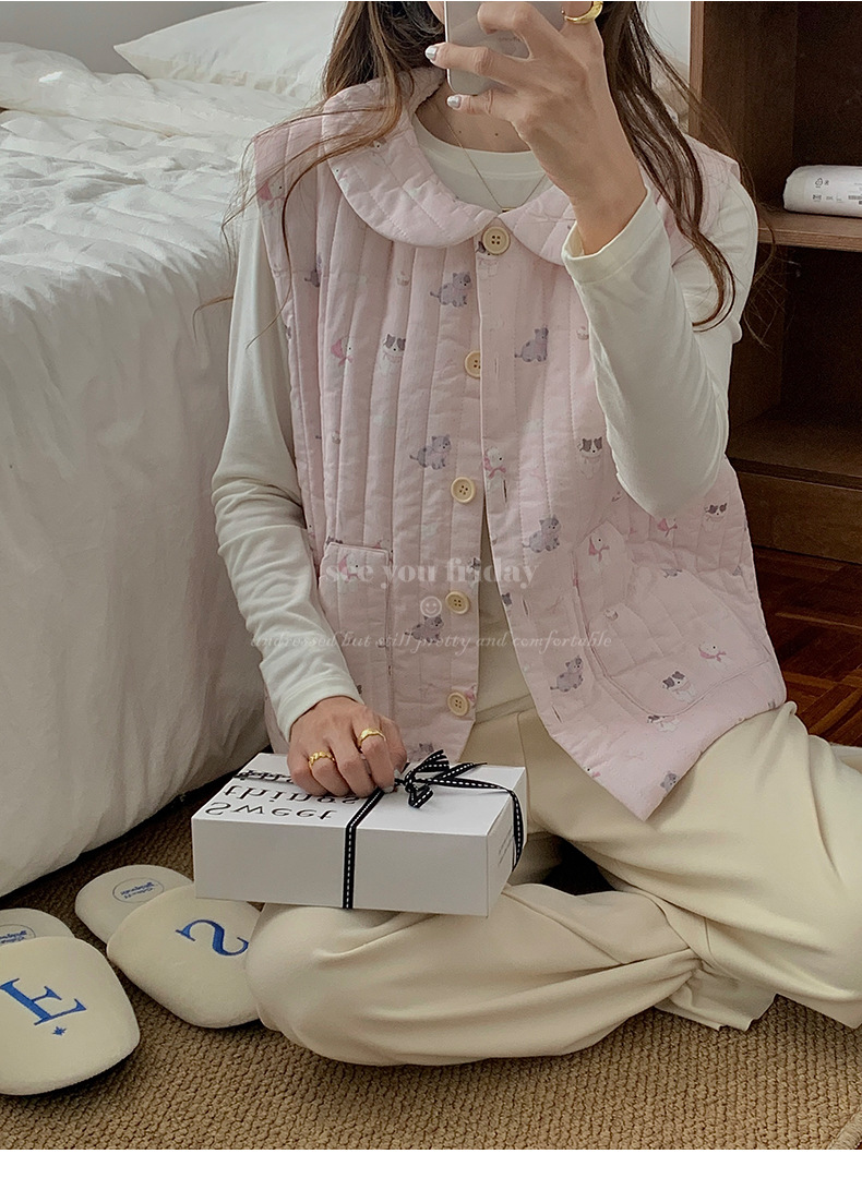 Трехслойные стеганые хлопковые двухцветные мультяшные пижамы с воротником-куколка осень и зима женская 2024 новая одежда