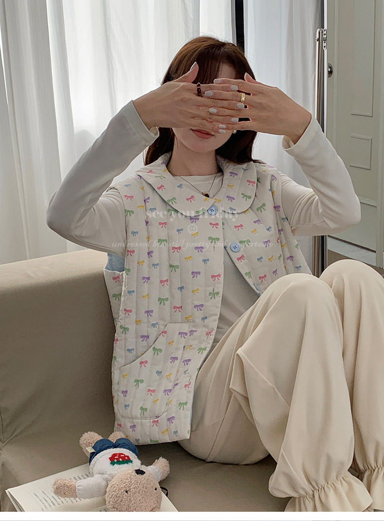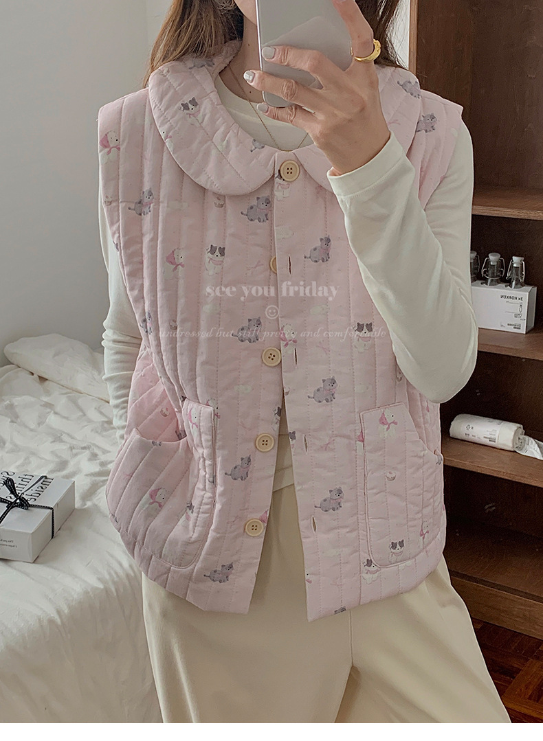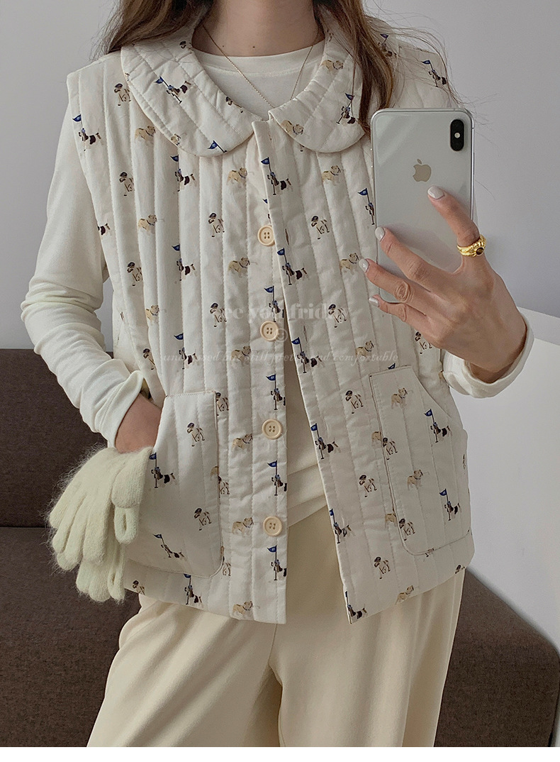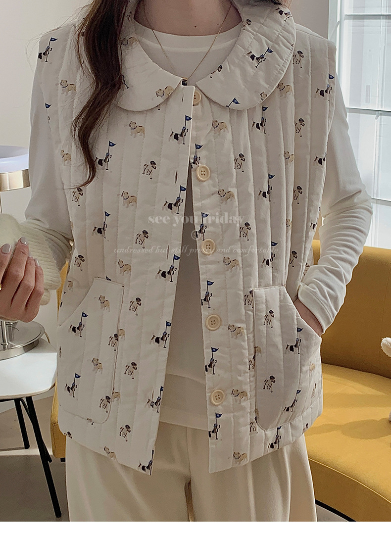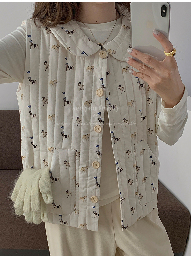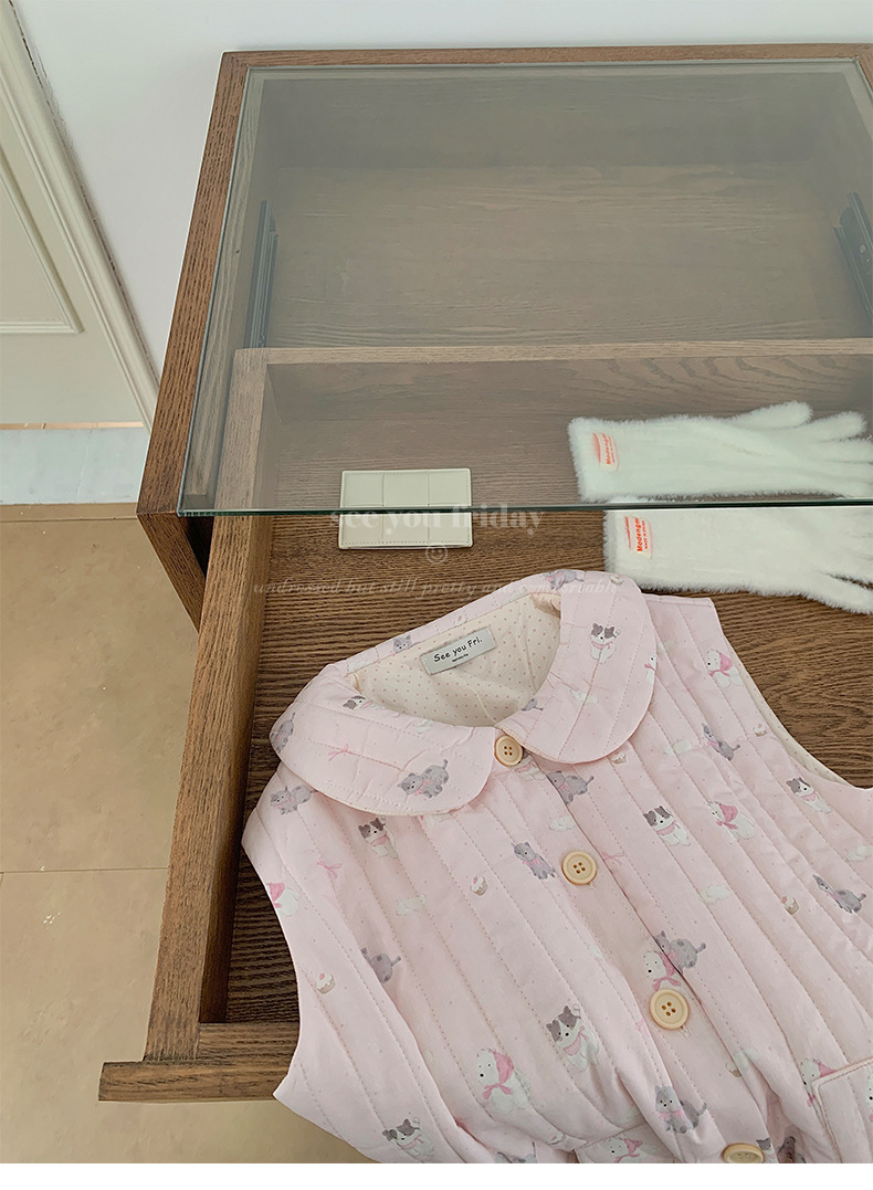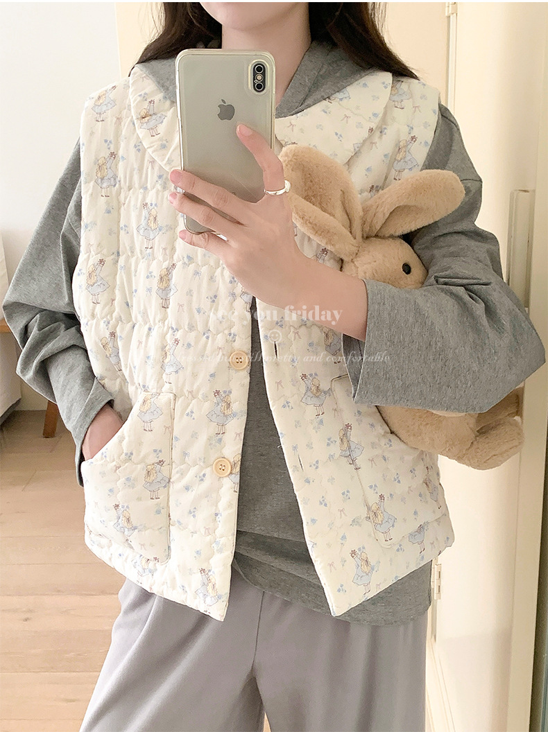 Трехслойные стеганые хлопковые двухцветные мультяшные пижамы с воротником-куколка осень и зима женская 2024 новая одежда