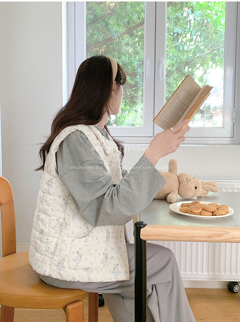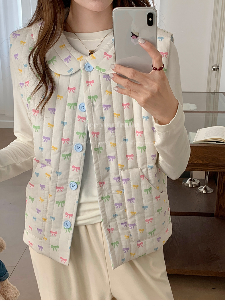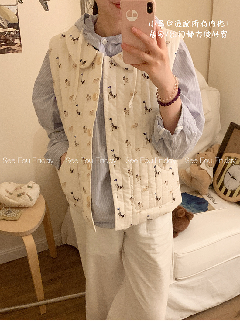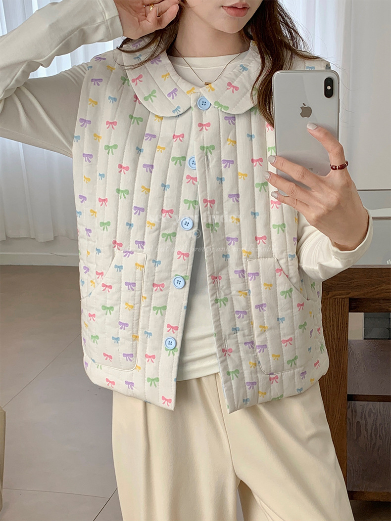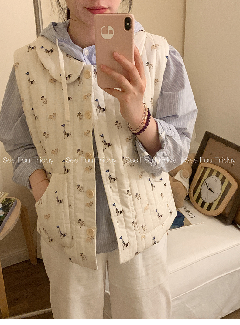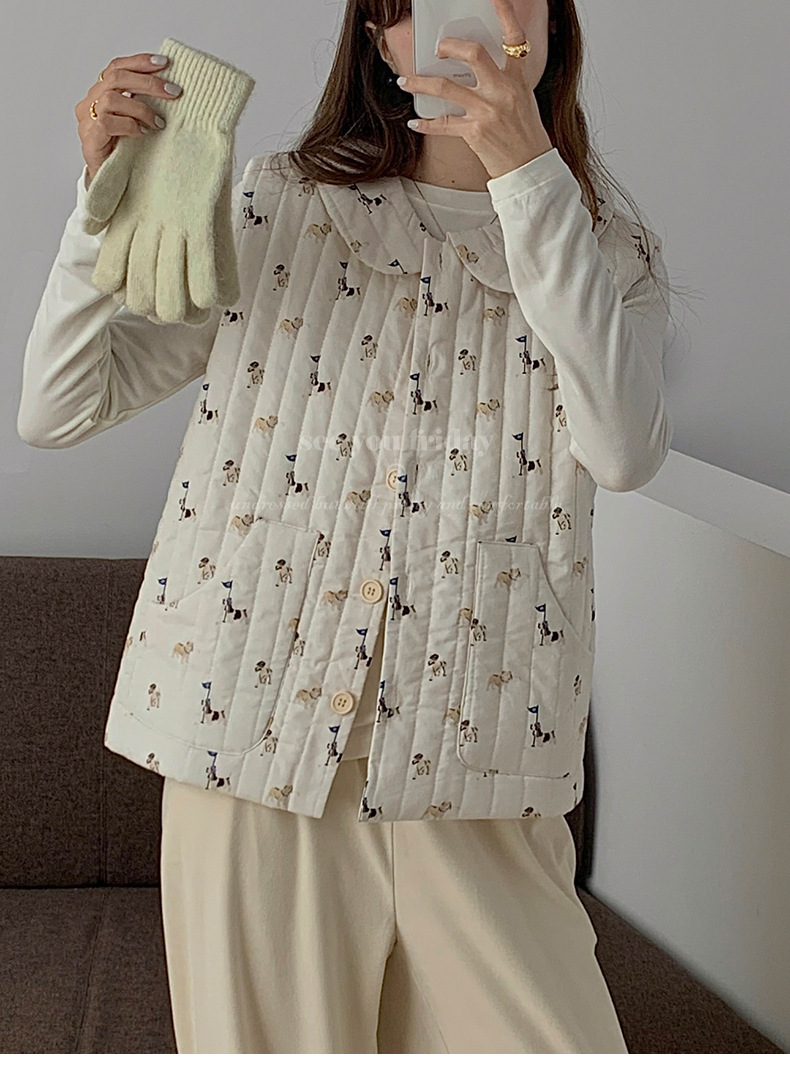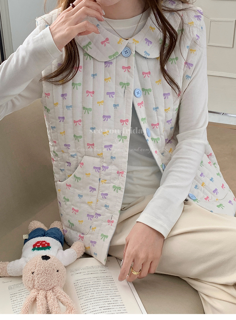 Трехслойные стеганые хлопковые двухцветные мультяшные пижамы с воротником-куколка осень и зима женская 2024 новая одежда