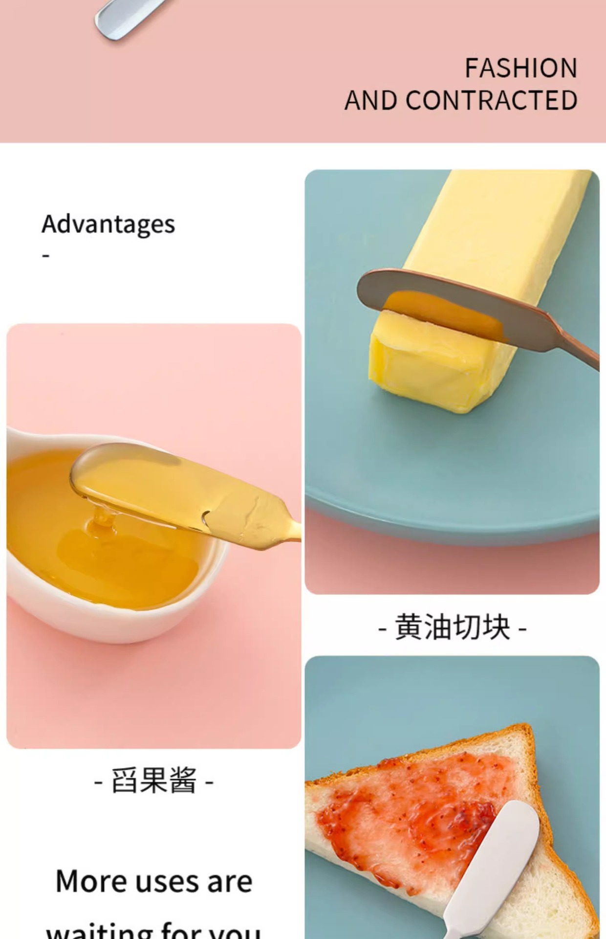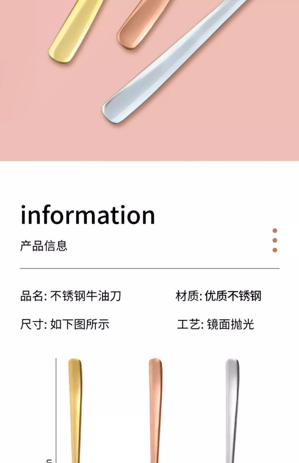 ![]() | Stainless steel butter knife [rose gold]] | a pack | ¥1.36 / ≈ 16 ₽ | 379 | 5635946628589 |