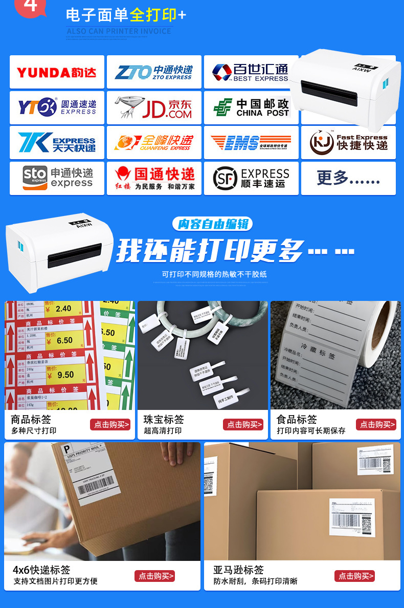 8.应用广泛,适用于工厂生产和仓库打标贴标,快递运输面单,货架标签,商品价格标签,邮政标签,医药行业和珠宝行业标签等。