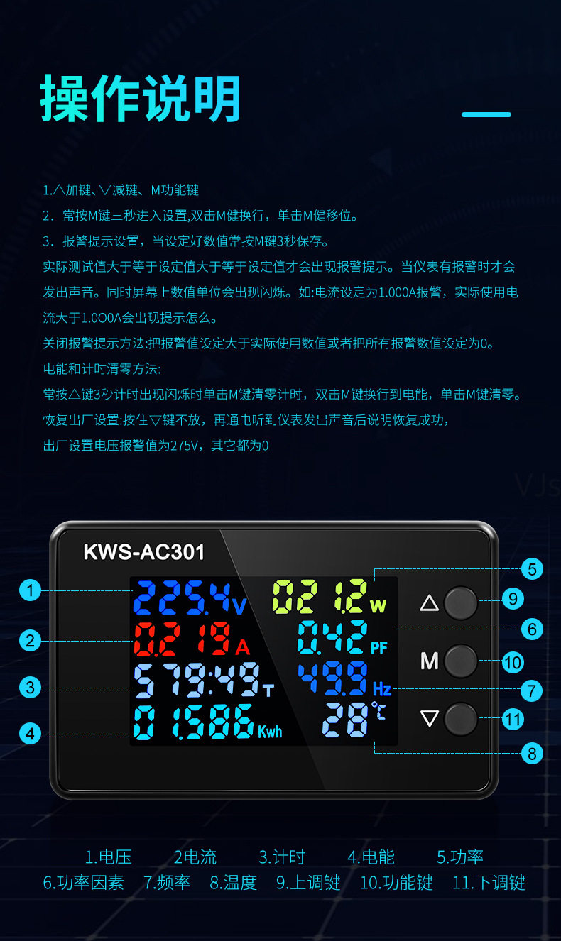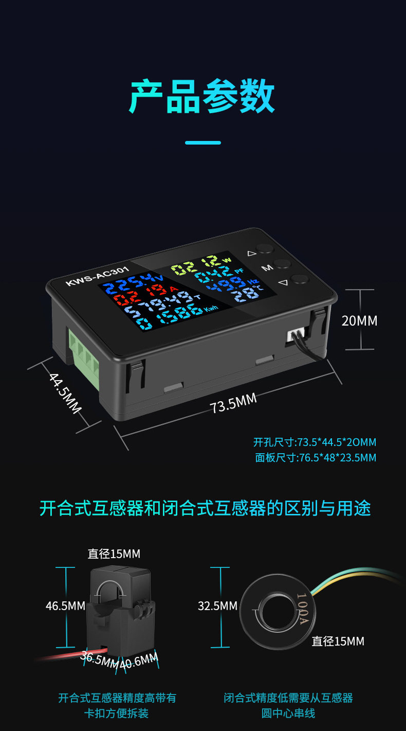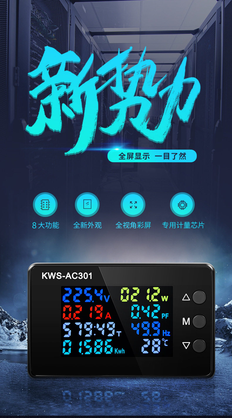 AC вольтметр KWS-AC301, 20A/100A, цифровой вольтметр AC 50-300V