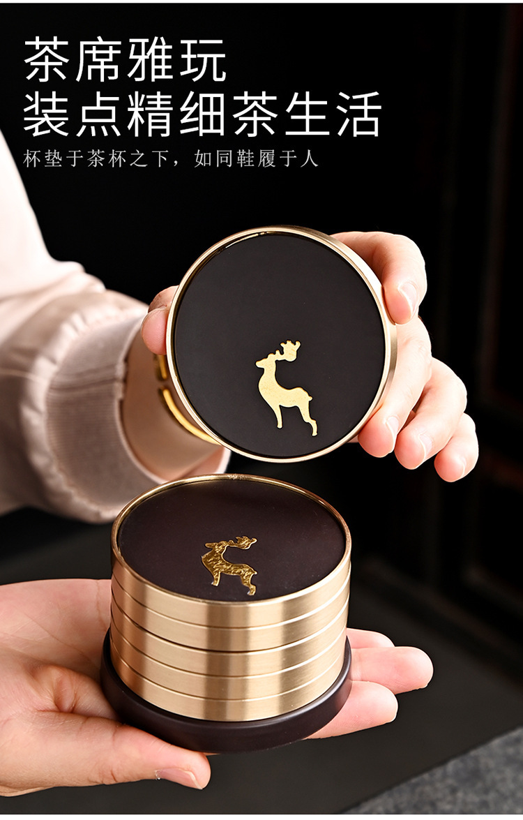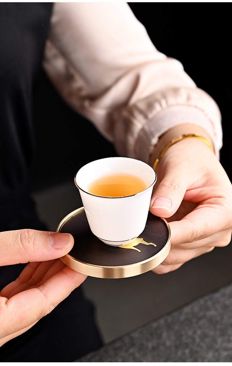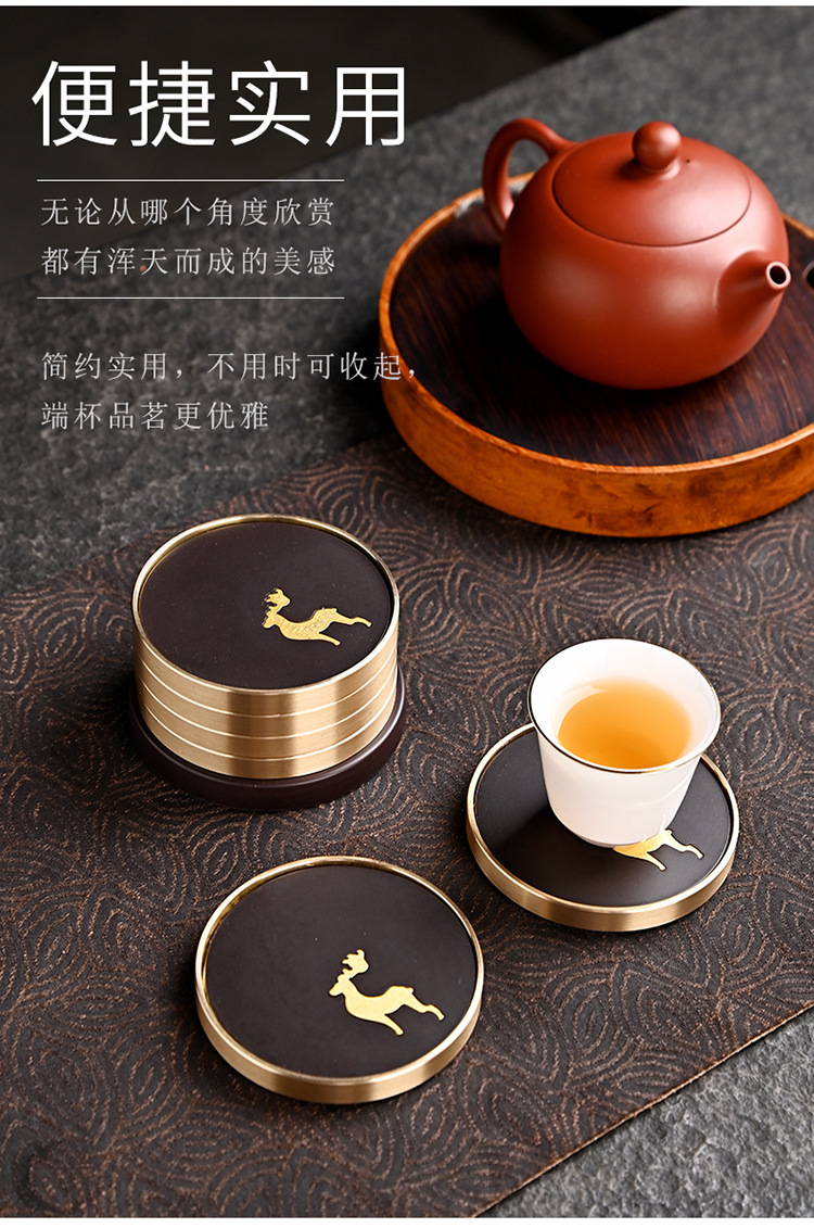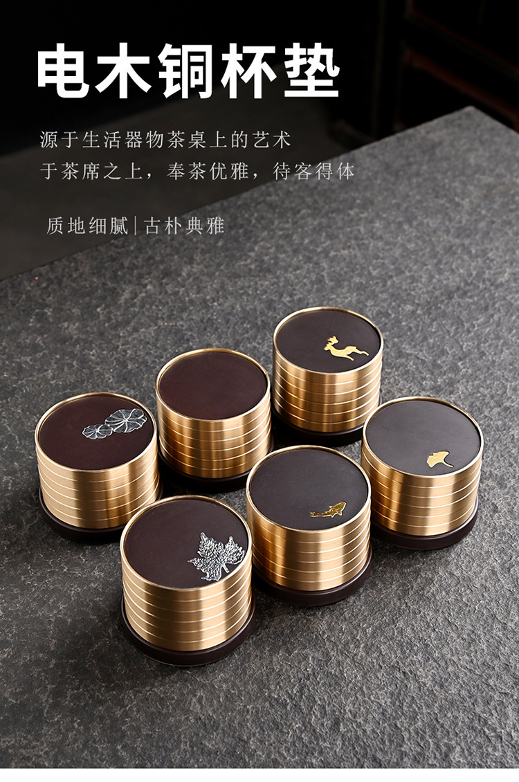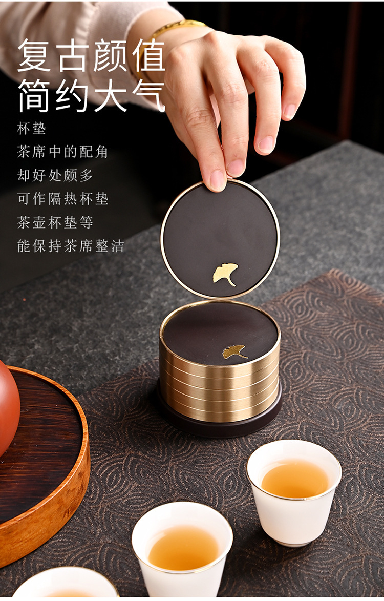 Подставка для чайной чашки из бакелита с медными элементами и деревянным подносом, подставка из чистой латуни, высококлассные аксессуары для чайной церемонии, термостойкий чайный коврик