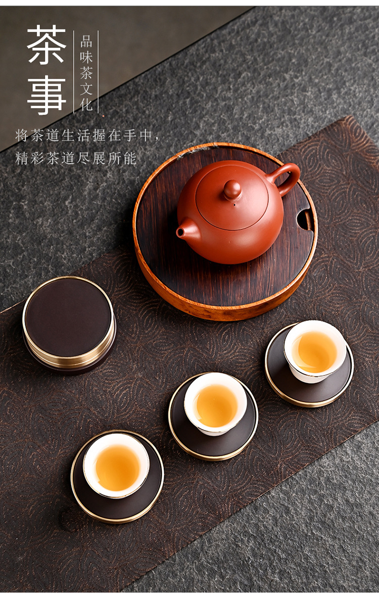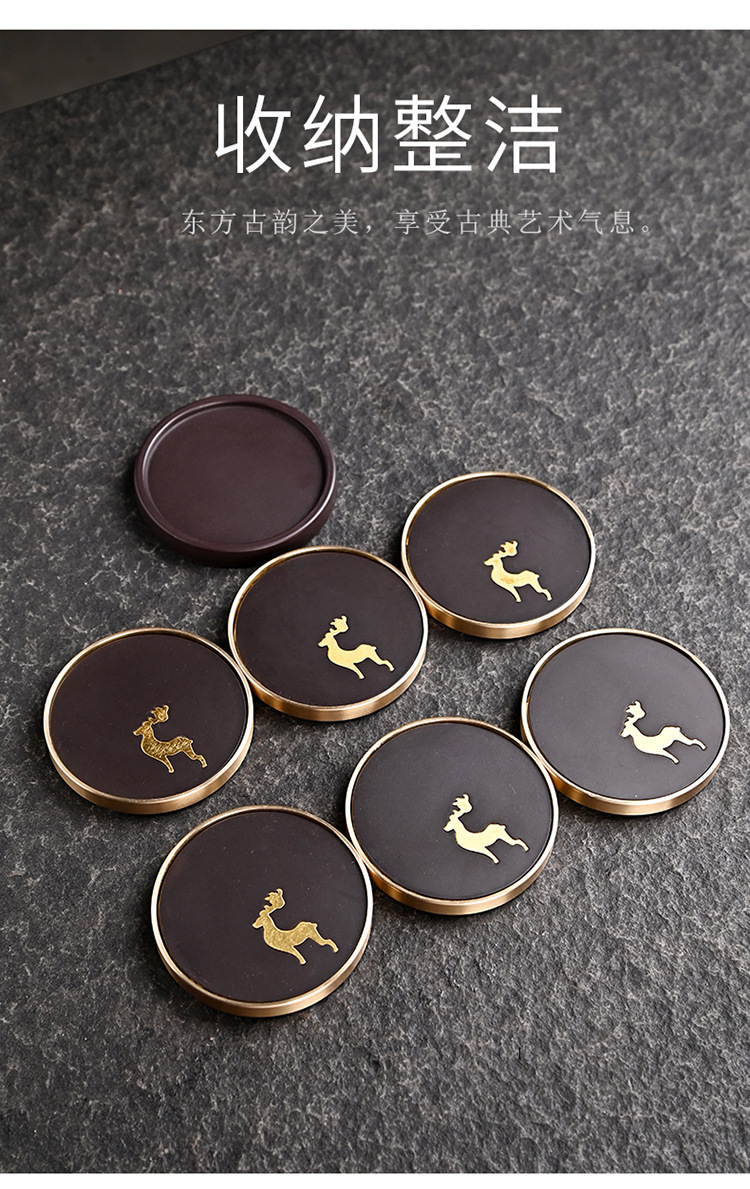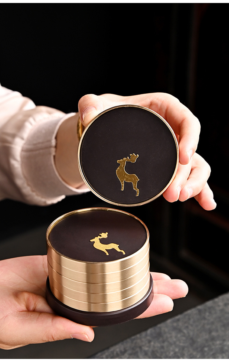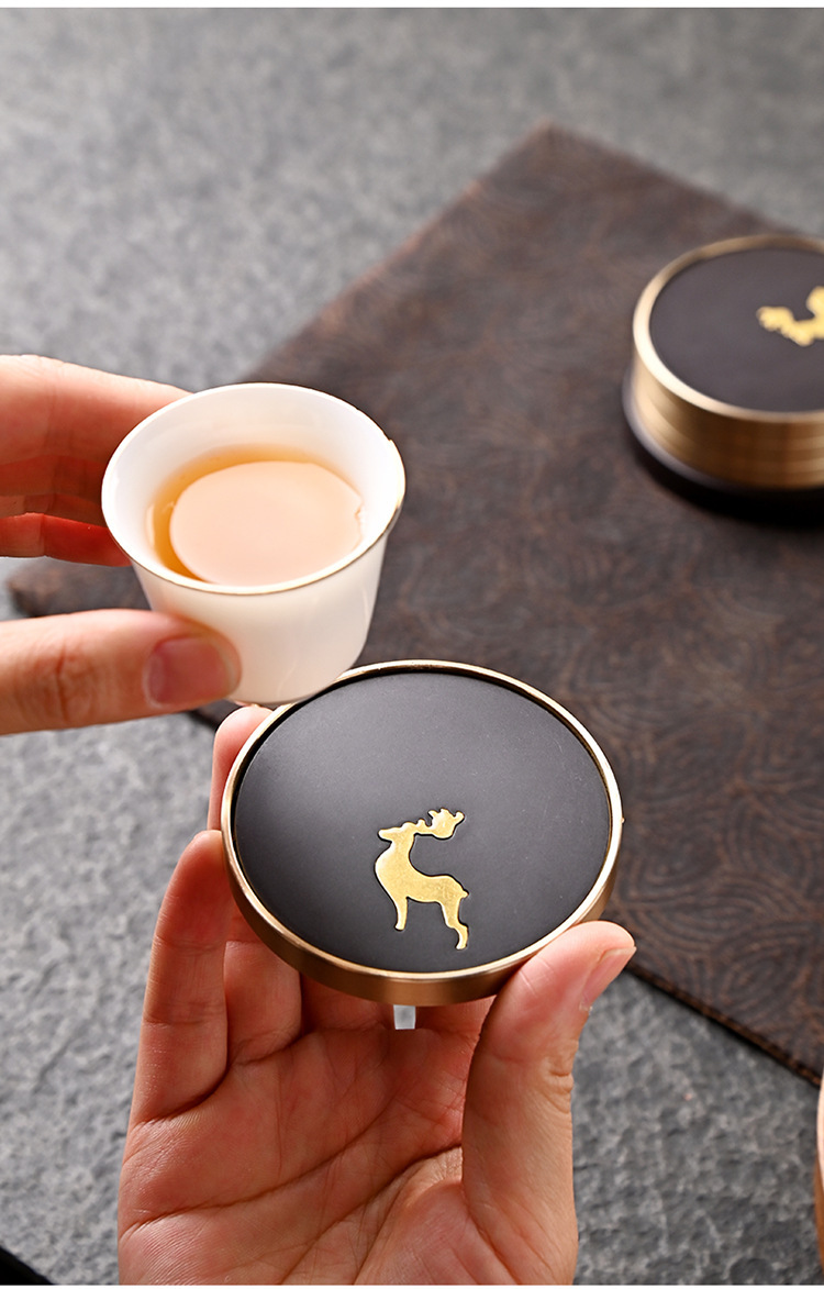 Подставка для чайной чашки из бакелита с медными элементами и деревянным подносом, подставка из чистой латуни, высококлассные аксессуары для чайной церемонии, термостойкий чайный коврик