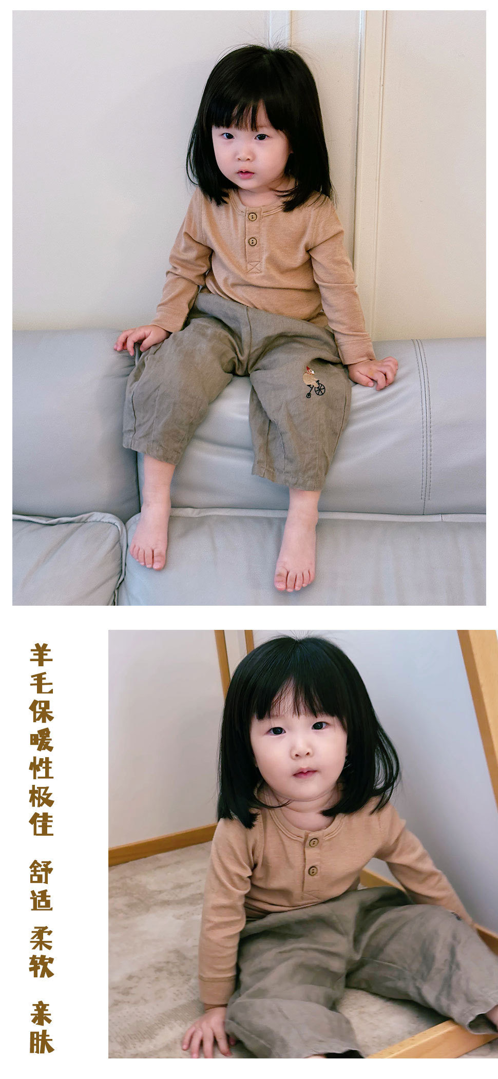 Детские пижамы из шерсти и тенсела, класс A, бесшовный комплект на весну и осень, унисекс