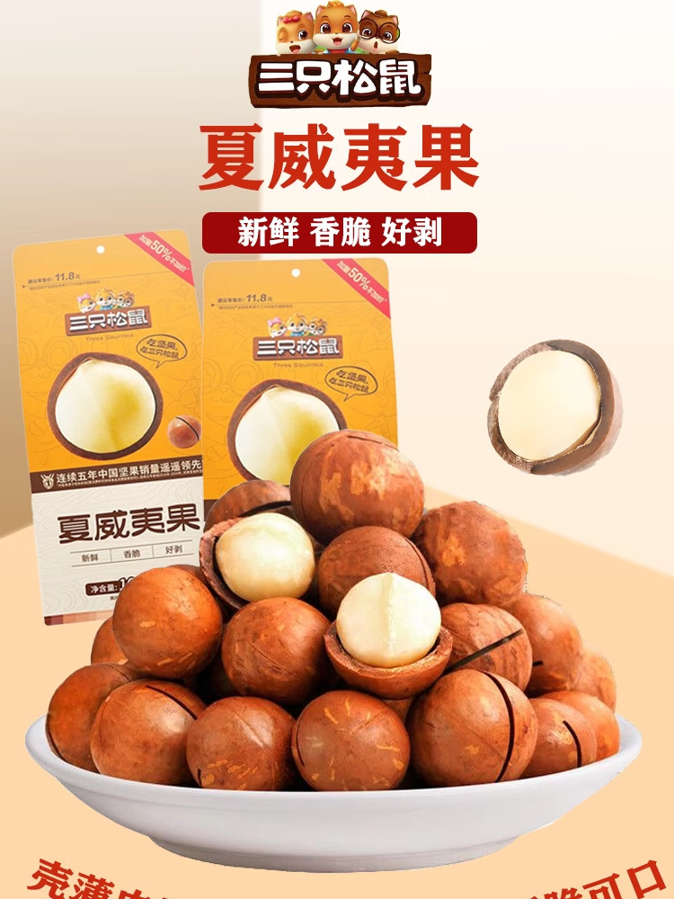 Орехи Three Squirrels, 100г, гавайские фрукты, орехи с кремовым вкусом, очищенные вручную, миндаль, фисташки, закуска