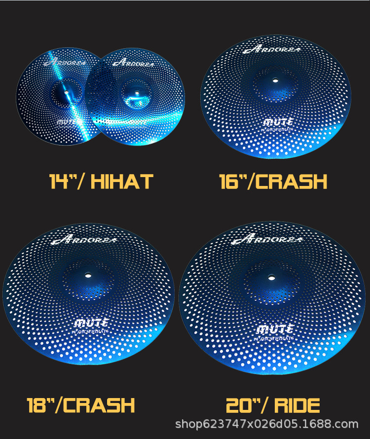 Оптовый производитель кастомных логотипов синих матовых бесшумных музыкальных инструментов набор тарелок из сплава пять предметов комплект ударных пять барабанов