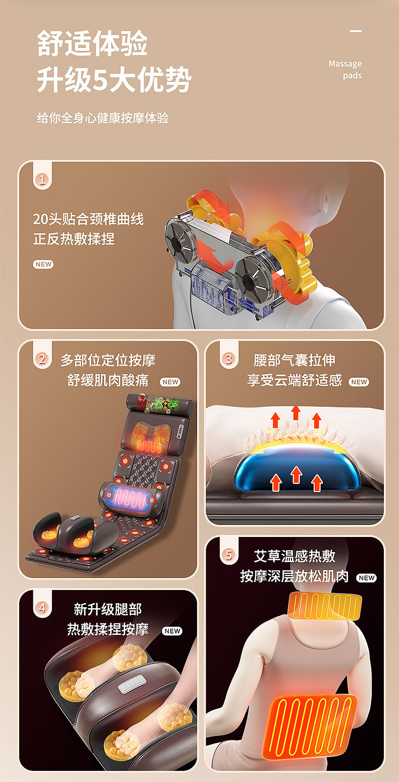 Массажный матрас для шейного отдела и поясницы, электрический многофункциональный массажер для всего тела, домашний массажный коврик