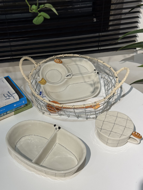 Плоская тарелка для фруктов серии Песик с высоким эстетическим значением, тарелка для закусок, сервировочная тарелка, салатная тарелка, чашка для завтрака