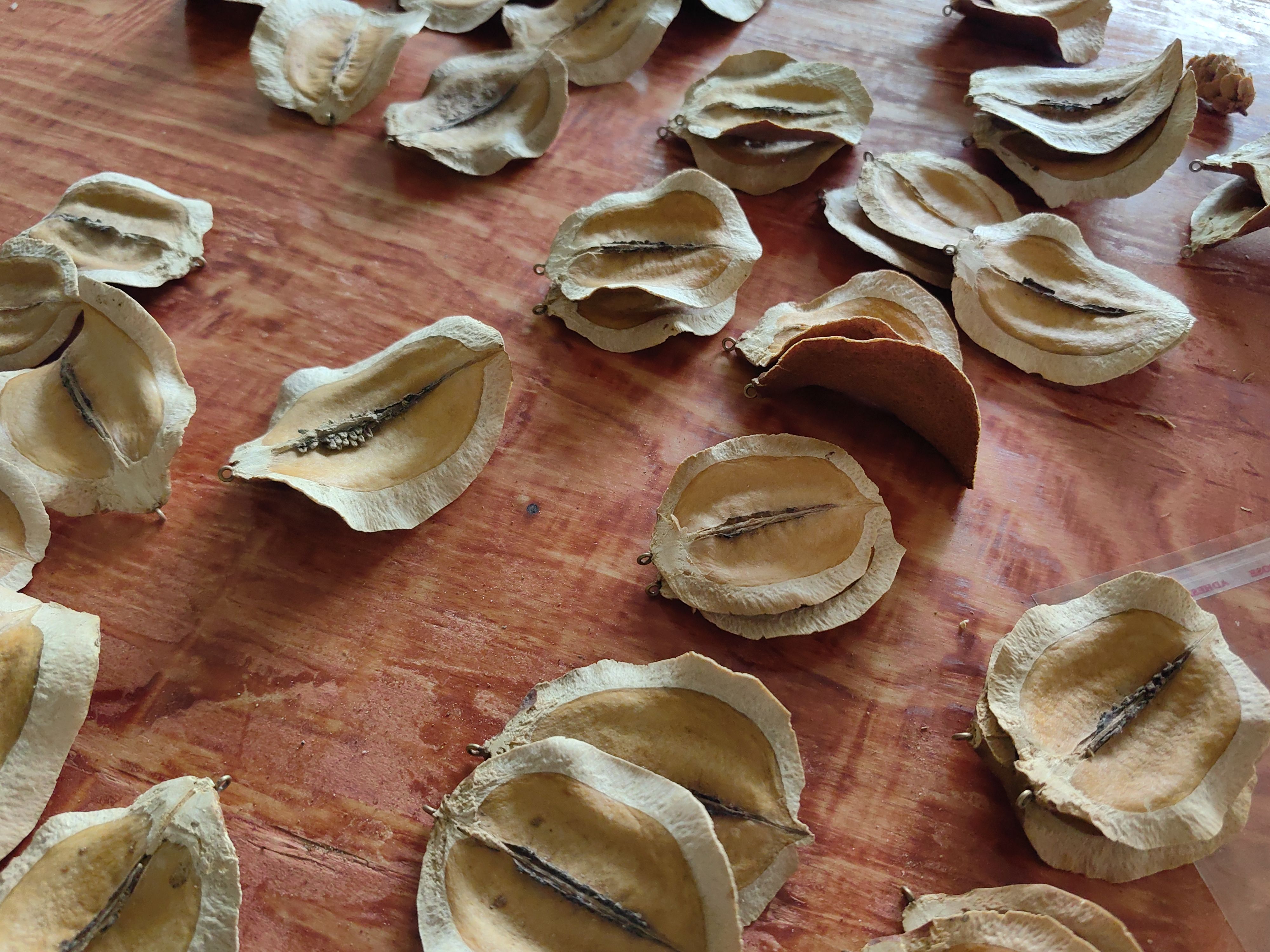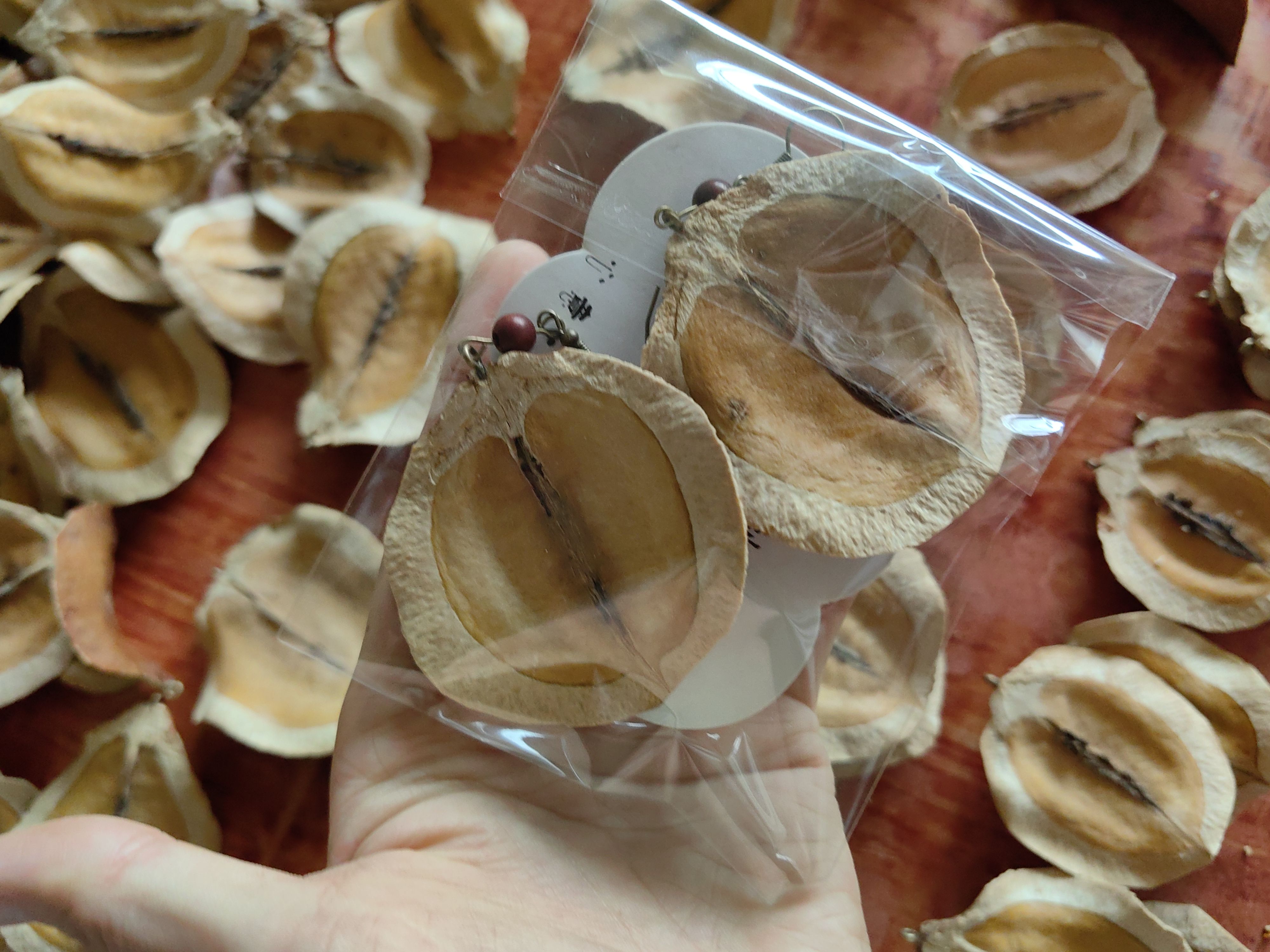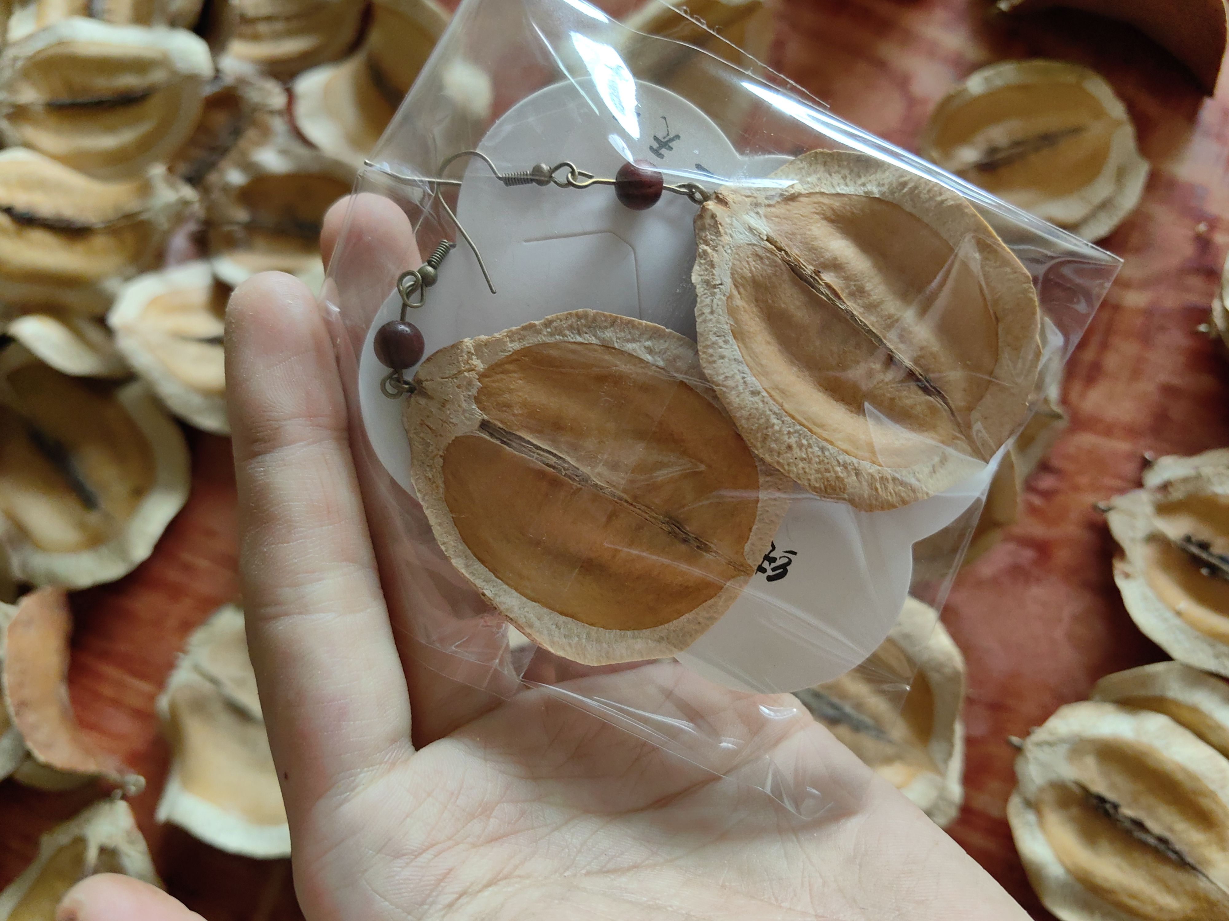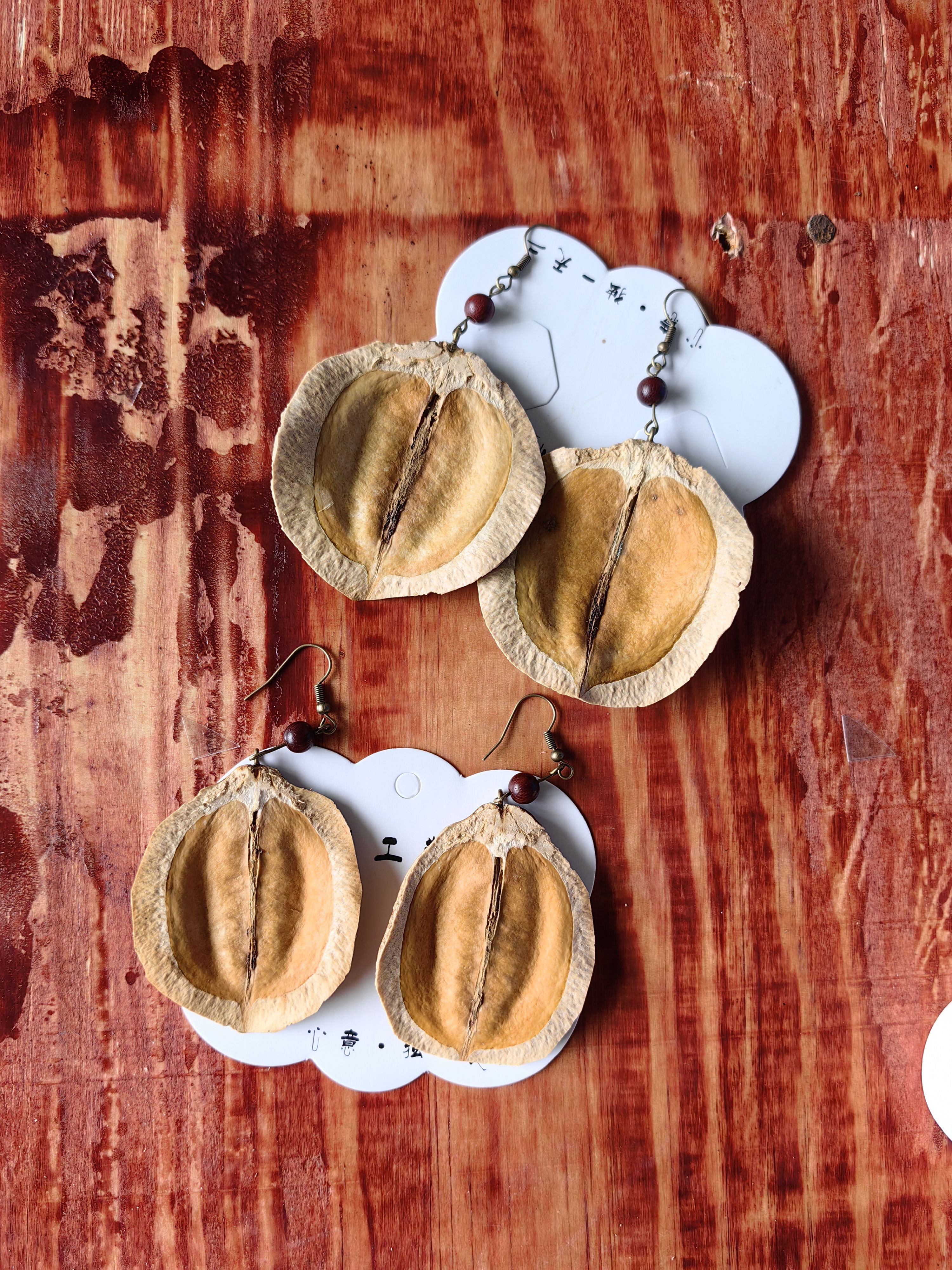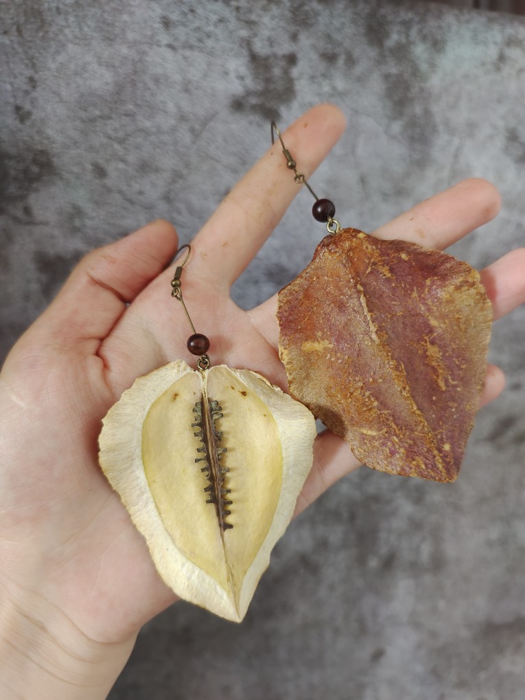 [Jiang Yiyan Same] Серьги из дерева с экзотическими плодами якаранды, преувеличенные серьги в стиле Дали Цаншань
