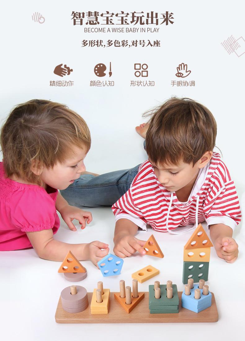 Детские деревянные геометрические фигуры набор колонн строительные блоки пять колонн соответствие макаронный набор