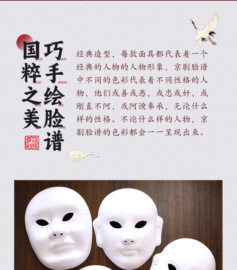 Маска Пекинской оперы DIY, материалы для ручной работы, китайский стиль, роспись, украшения на праздник середины осени