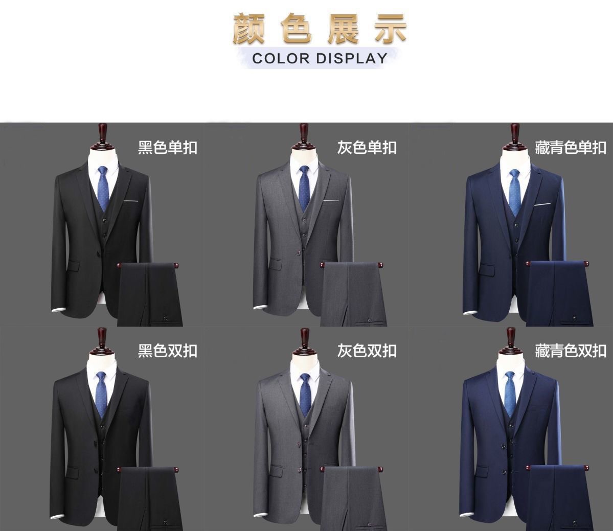 📦 | Navy blue two-button jacket + trousers + vest + shirt | 180 yards ( 72-77.5kg ) | ¥165.0 / ≈ 1 993 ₽ | 99686 | 5671503041022 | |