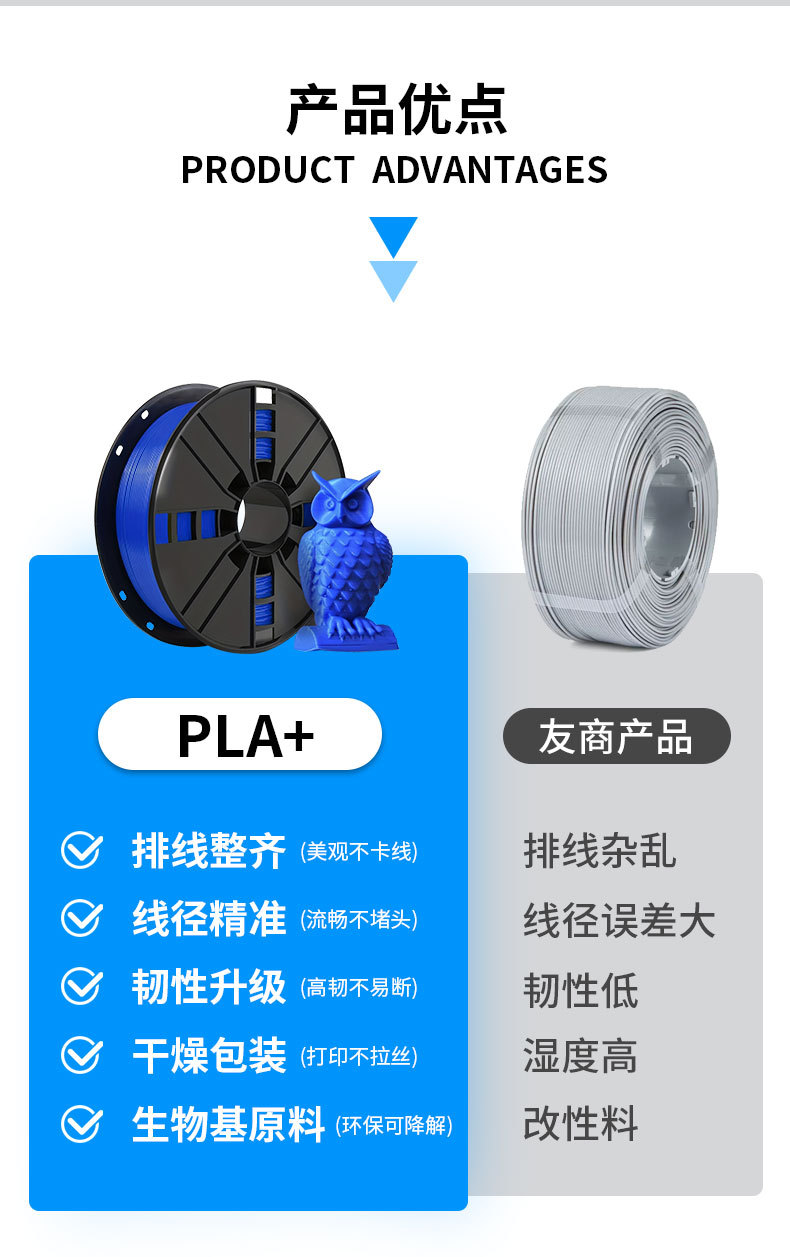 Coridy 3D печать PLA+ филамент высокая прочность FDM материал 1.75 мм аккуратно уложенные линии высокая скорость печати