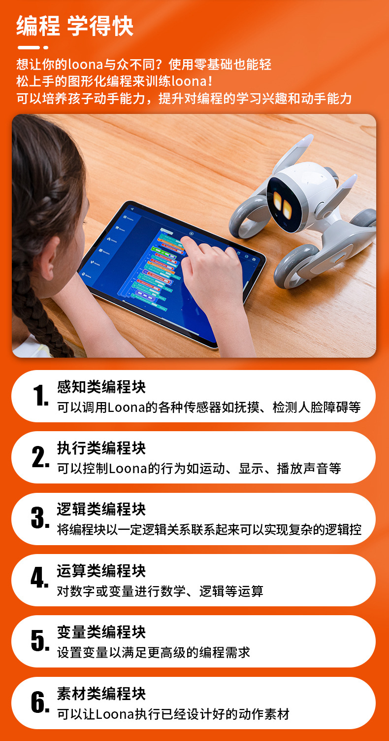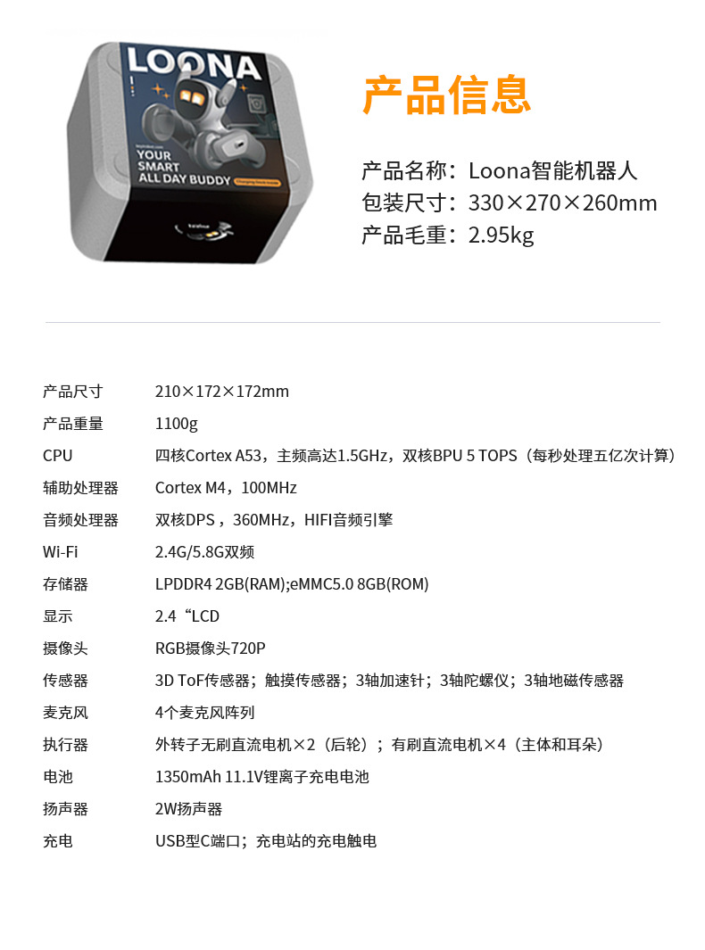 Список упаковки Loona robot dog*1, data cable, user manual, warranty card