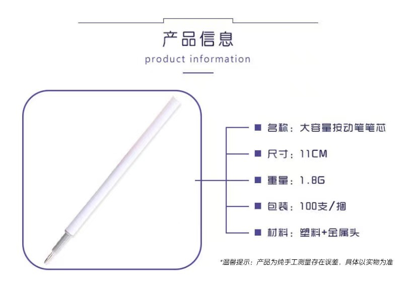 ![]() | Black refill [white rod] | 0.5mm [bullet] | ¥0.05 / ≈ 1 ₽ | 99900000 | 5813449951527 |