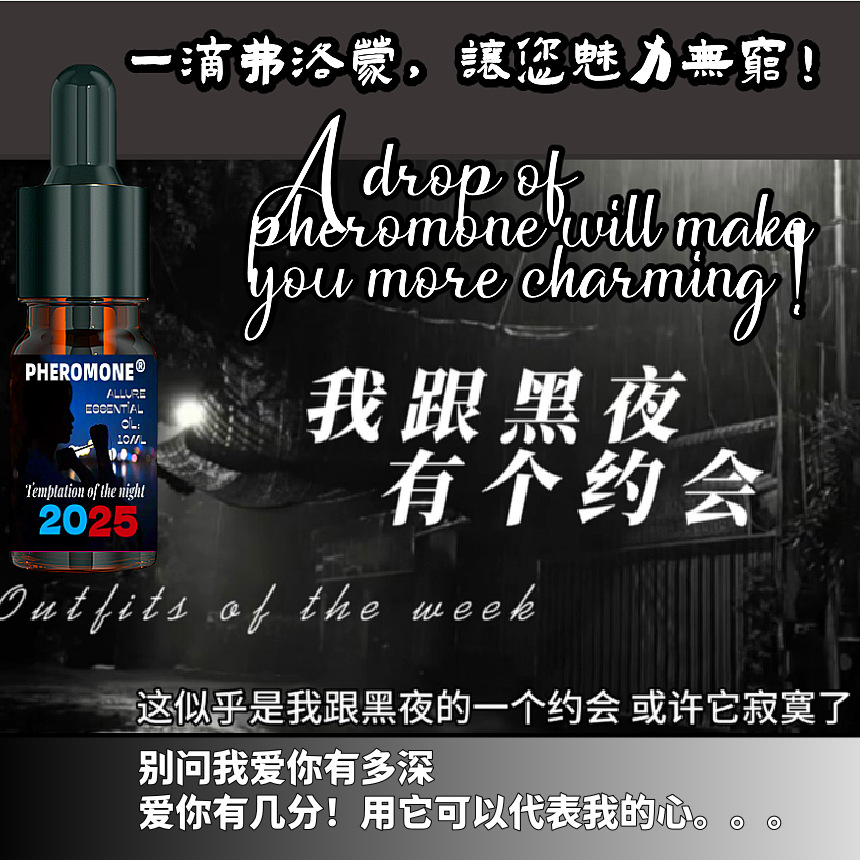 说明:该产品为日用品香精油系列,2025黑夜惑惑,男女通用,液体淡黄色,一滴涂抹(具体使用方法见包装说明),小鹿乱撞心酥如麻的味道,留香7天左右,深受国内外贵族友人的长期喜爱!