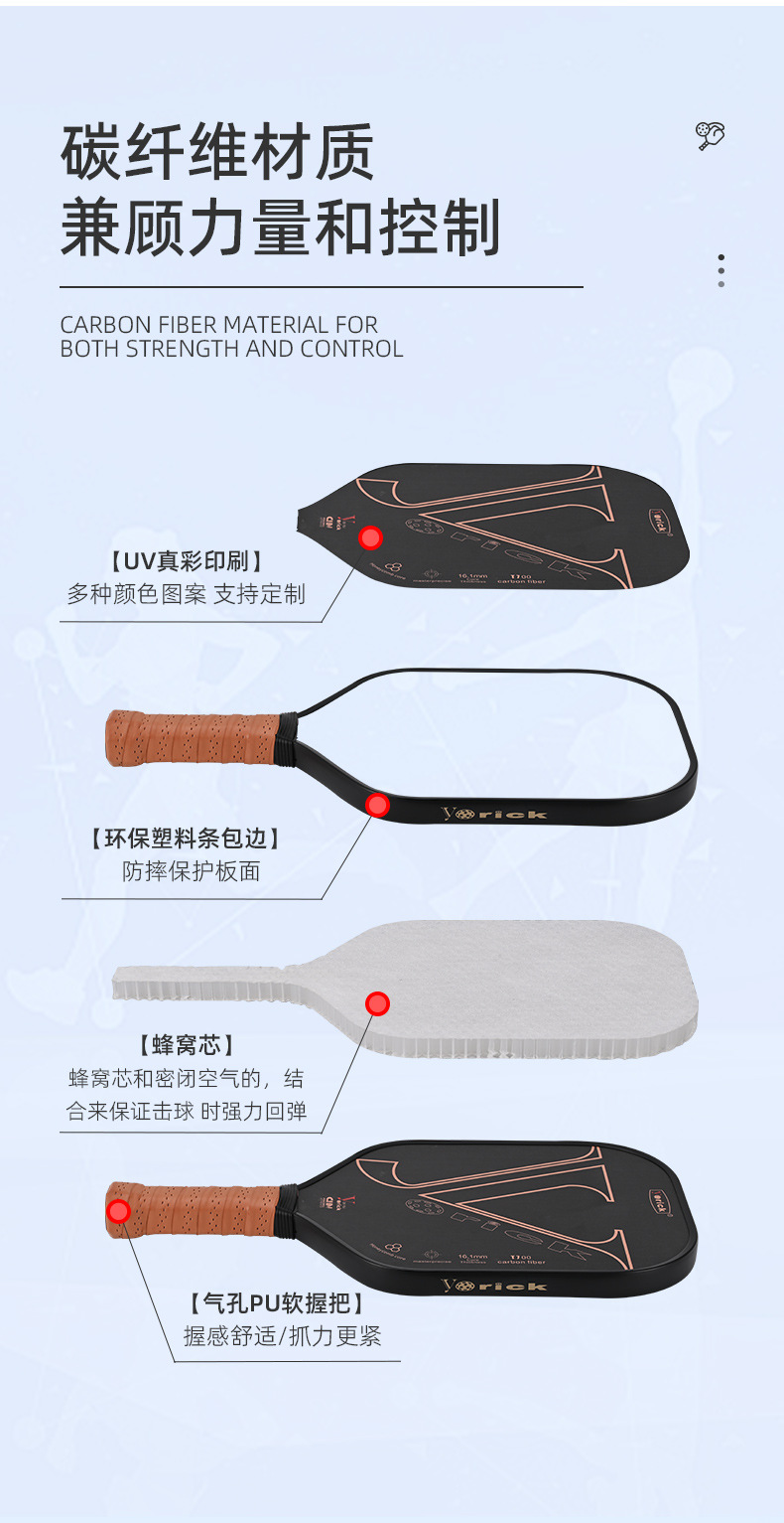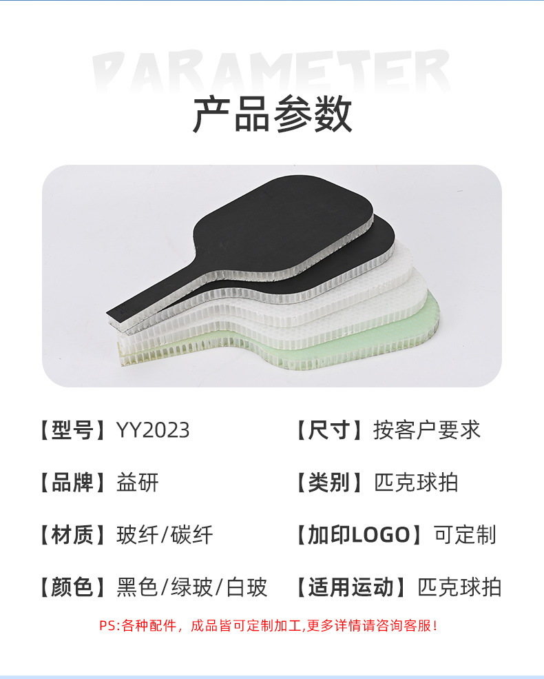 Пиклбол ракетка полуфабрикат из грубого углеродного волокна и стекловолокна, ракетка из углеродного волокна и стекловолокна с сотовым сердечником из ПП