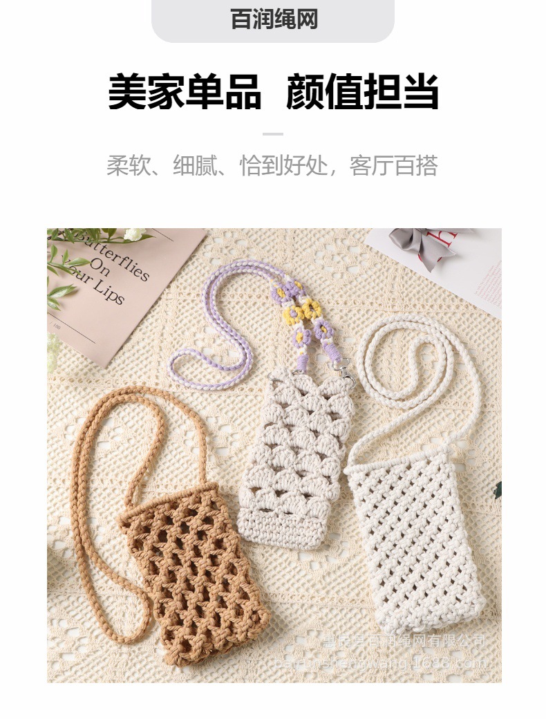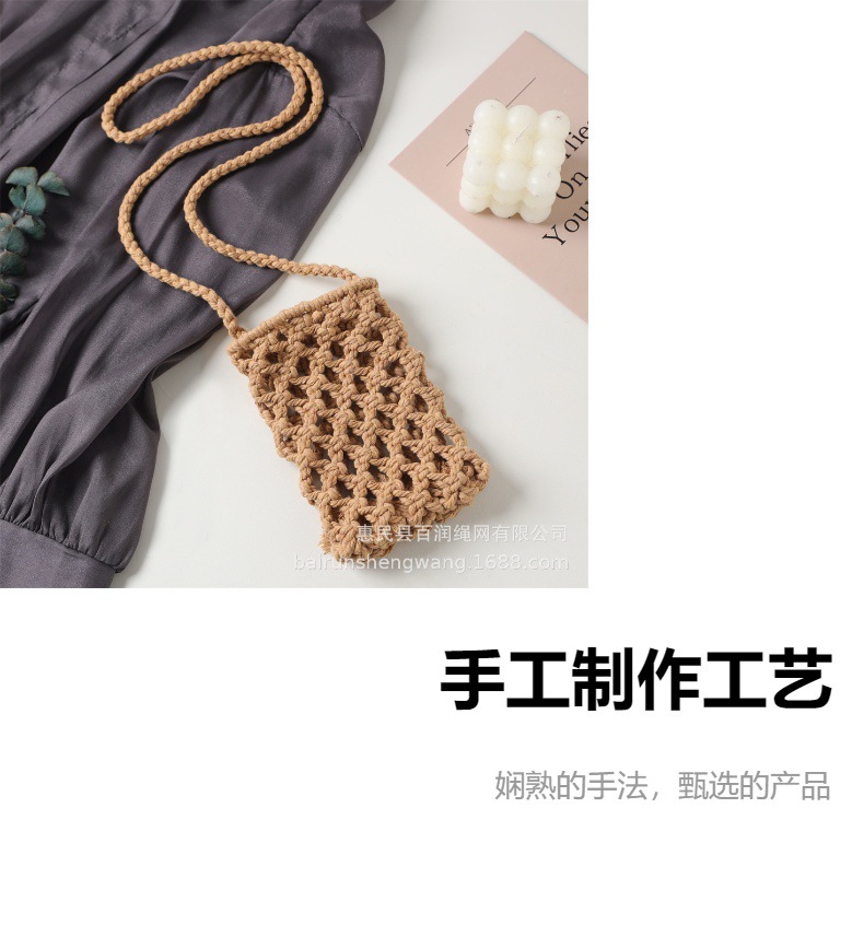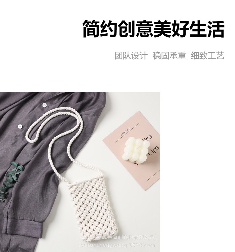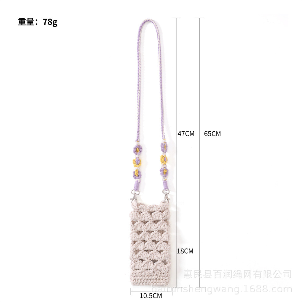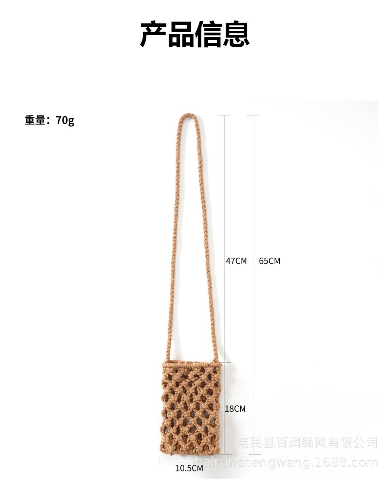 Ручная работа Вязаная сумка для мобильного телефона Летняя маленькая сумка Мини-сумка через плечо Праздничная женская сумка Многофункциональная сумка из хлопкового каната Сетчатый карман