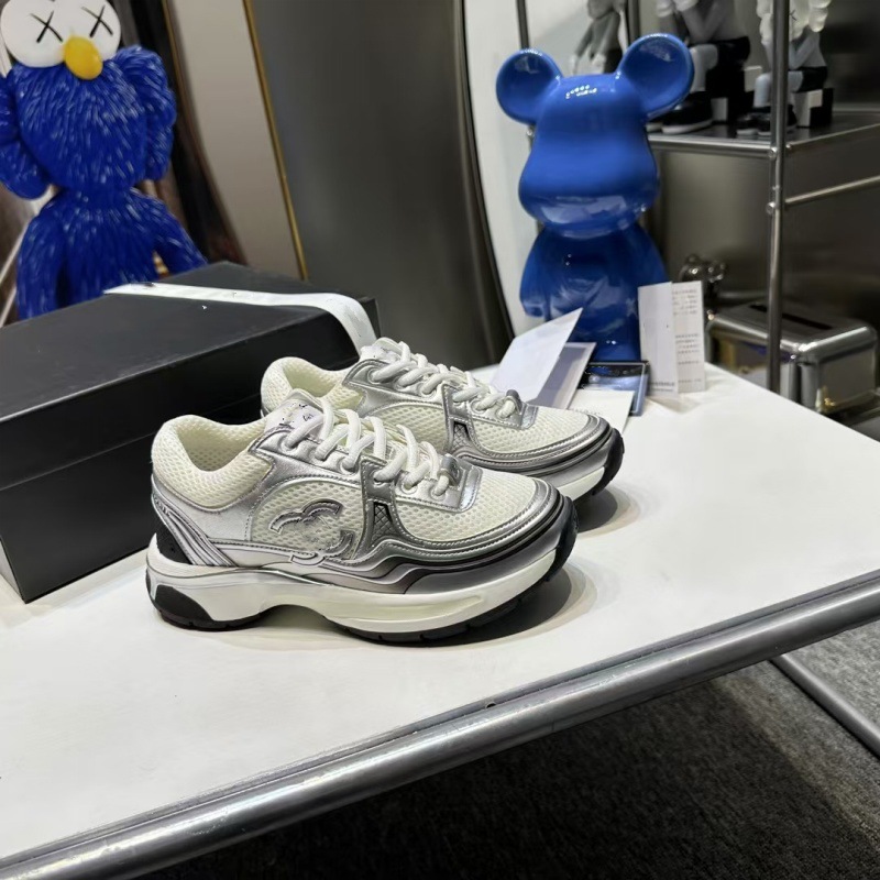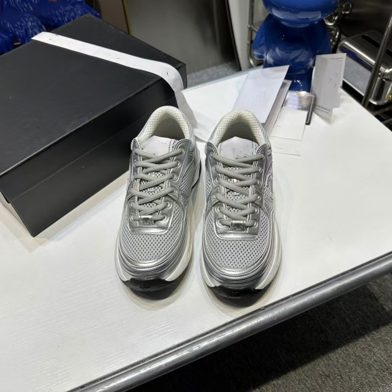 Кроссовки для женщин в стиле твид с серебряным рогом, 2024, сетка, легкие для сочетания, низкие повседневные обувь, толстая подошва, обувь для папы