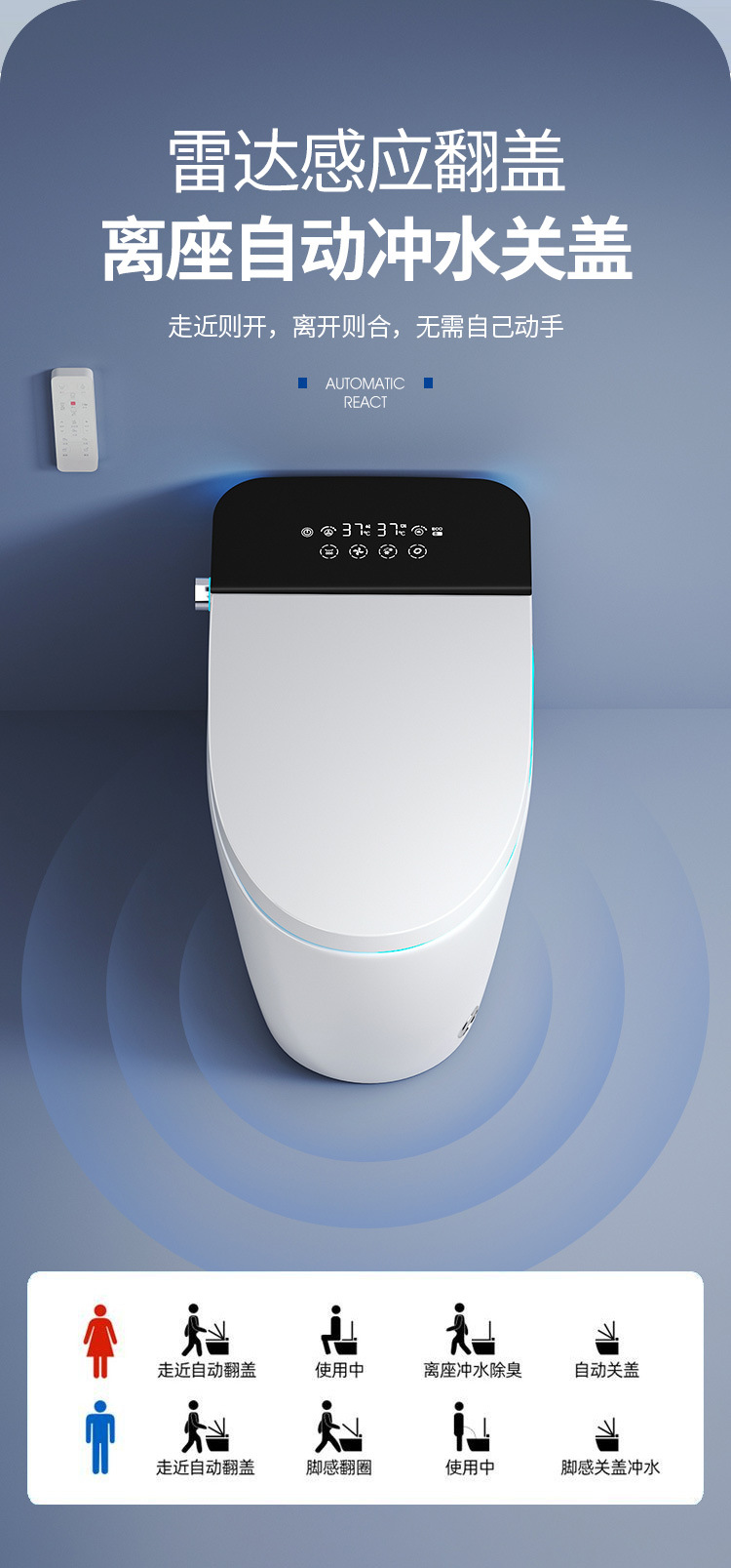 Полностью автоматический мгновенно нагревающий туалет без давления воды с ароматерапией и встроенным пузырьковым экраном