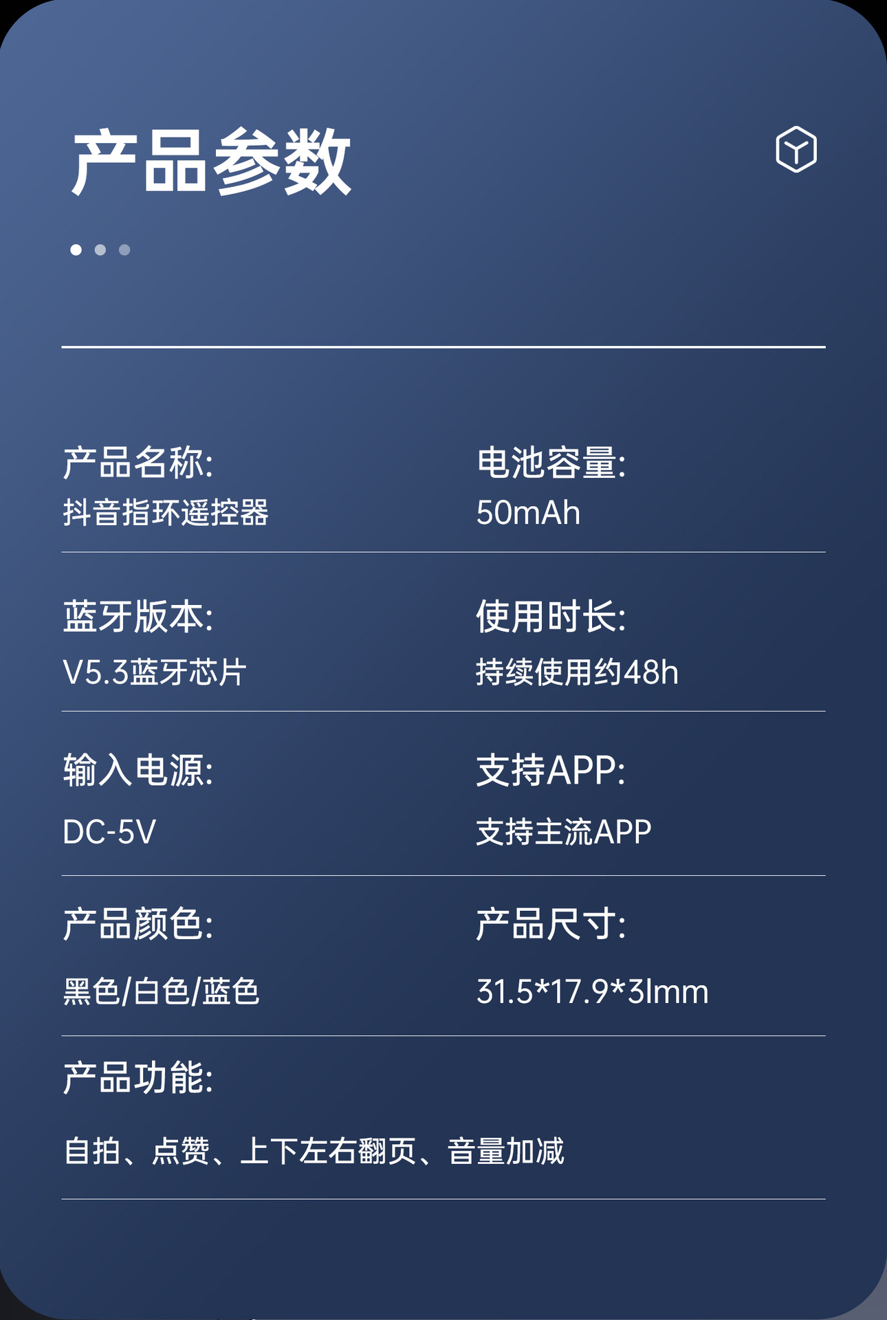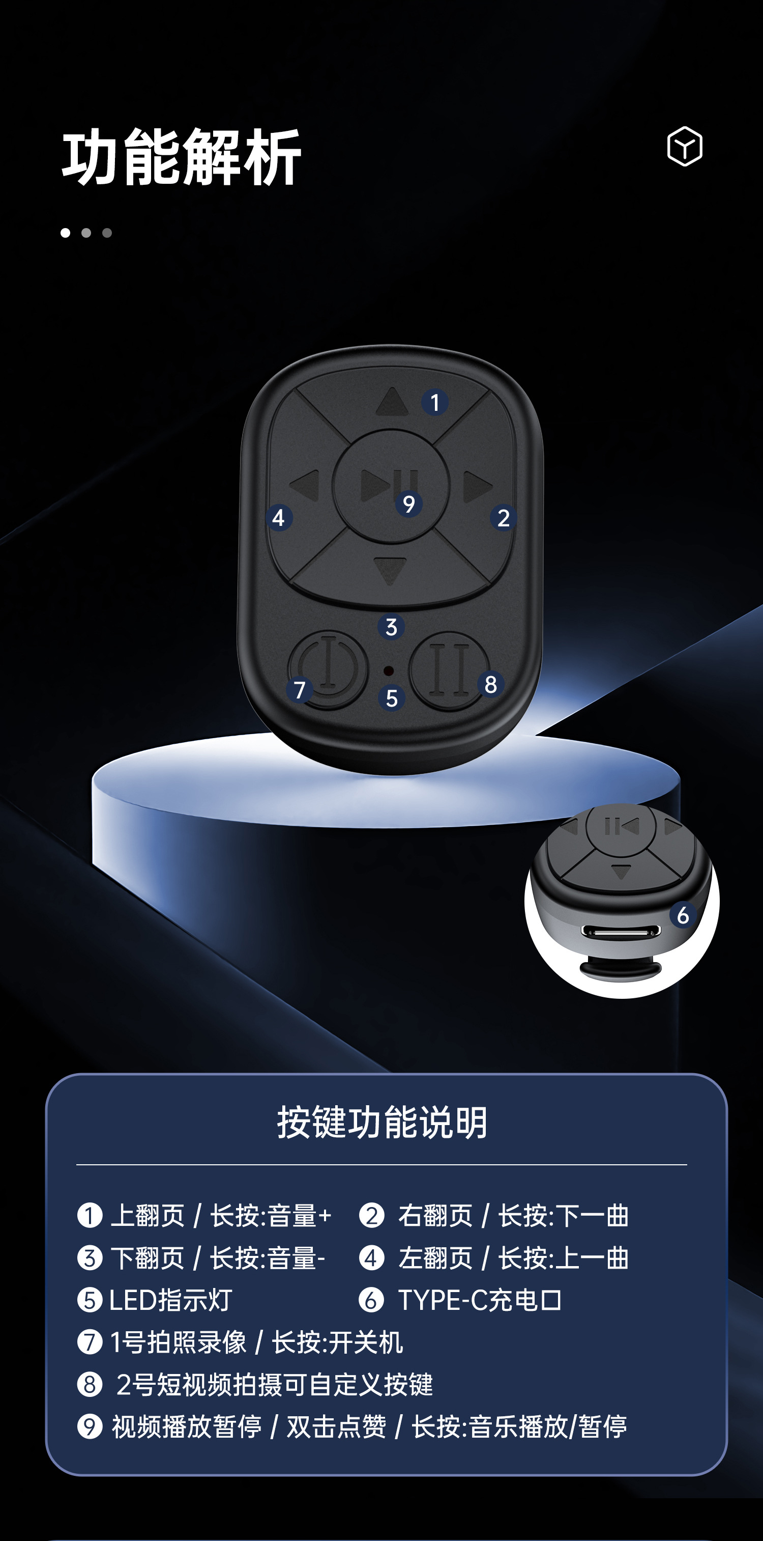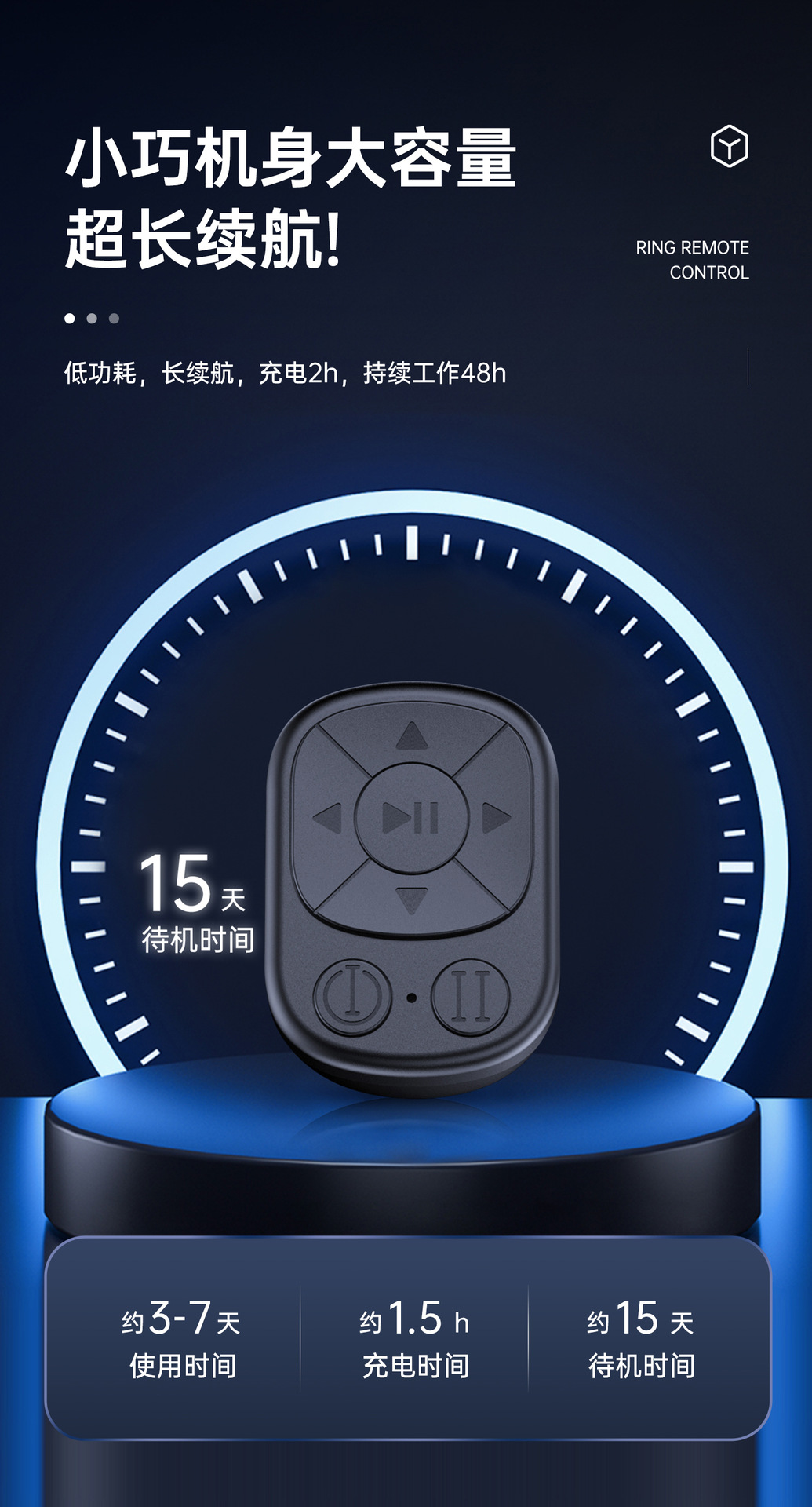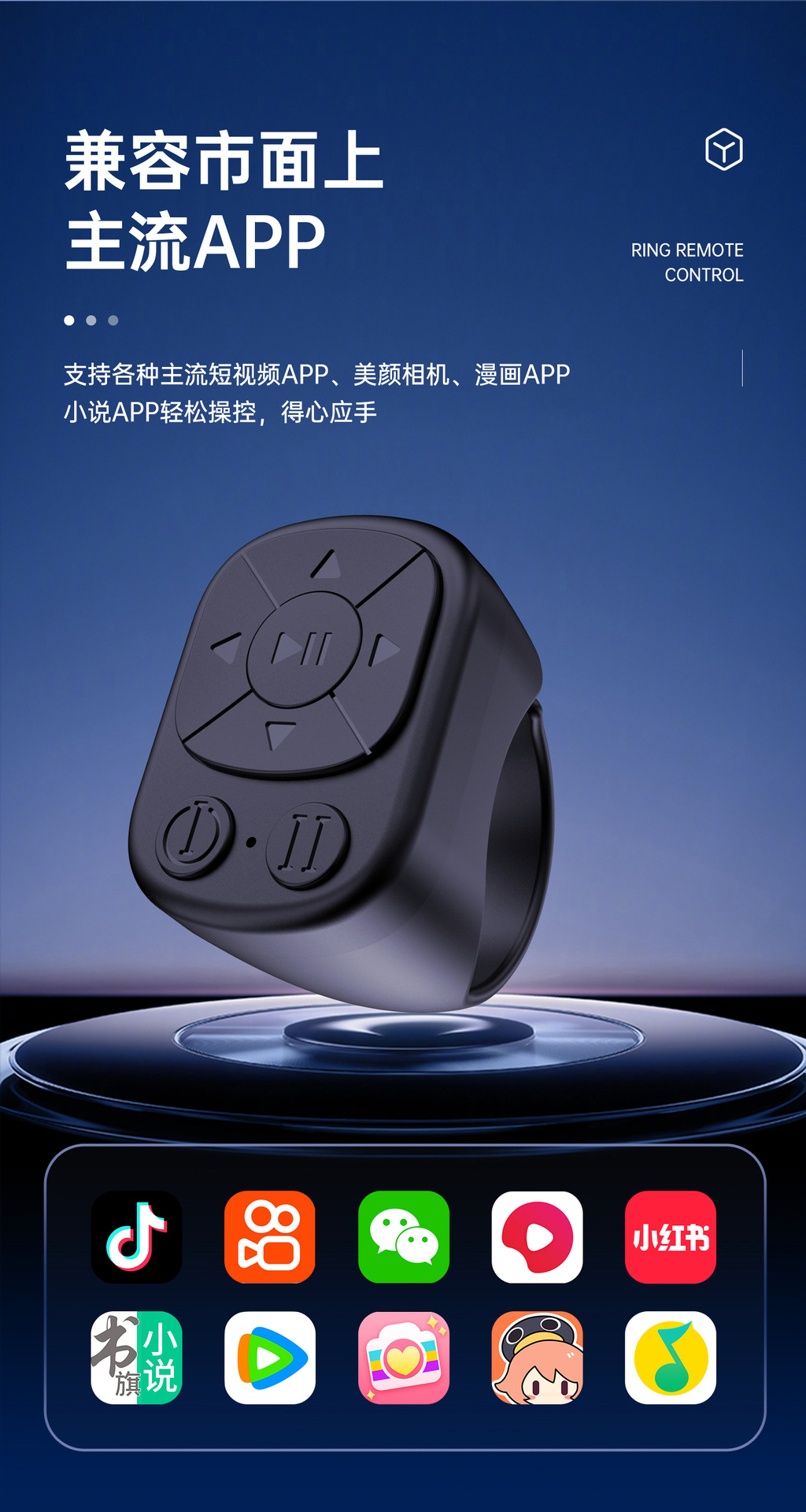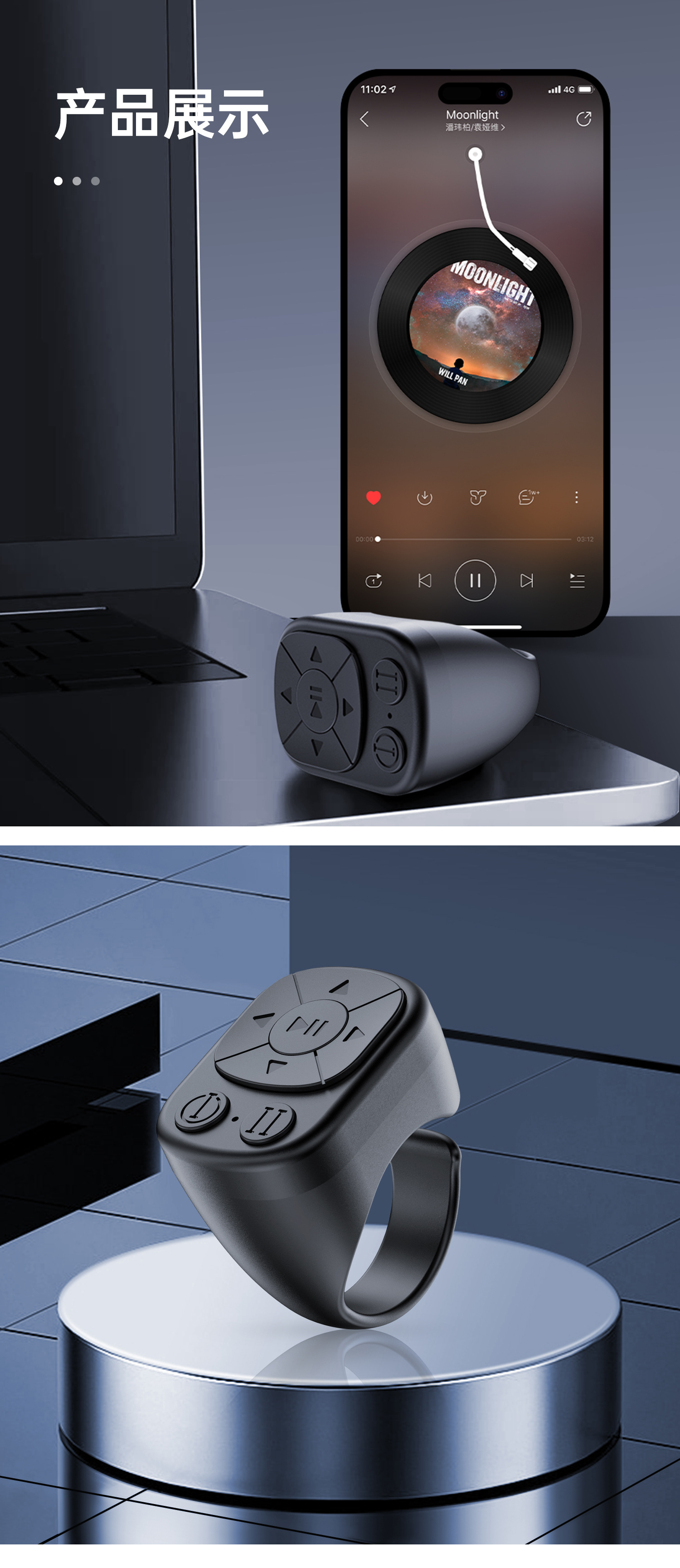 2024新款指环手机蓝牙遥控器,手机蓝牙遥控一键自拍、抖Y刷视频、点赞、音乐上下一首、电子书翻页等。