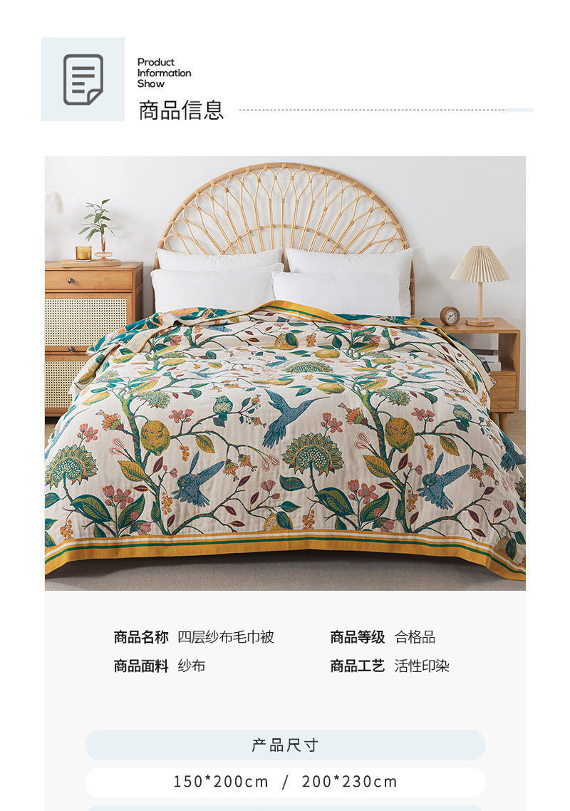 ![]() | Orange paradise pure cotton gauze towel quilt | 200x230cm | ¥105.0 / ≈ 1 269 ₽ | 1358 | 5814252871332 |