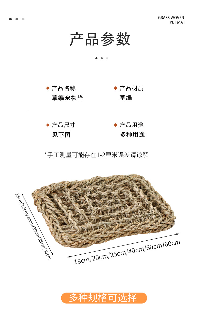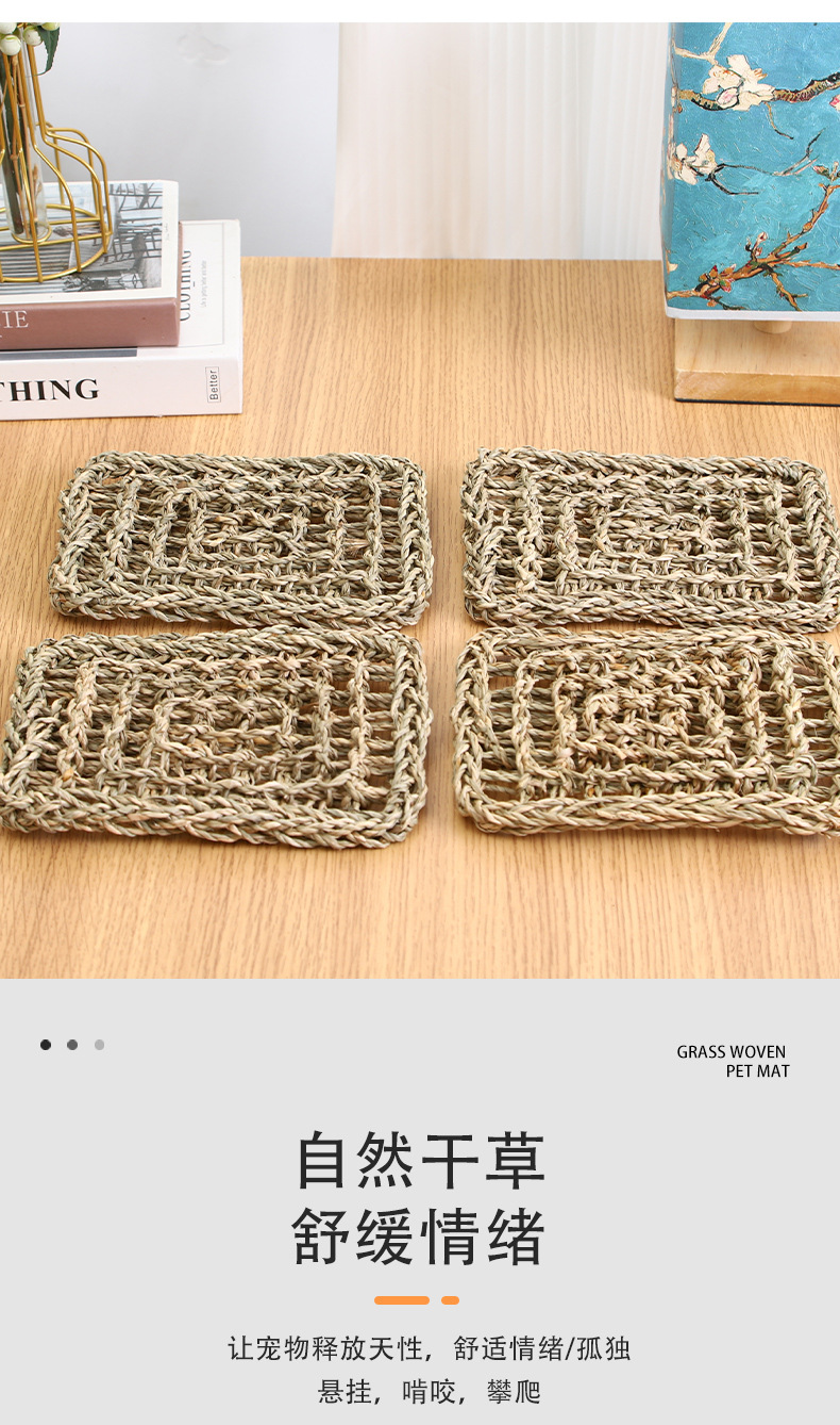 Соломенный коврик для домашних животных, ручной работы, соломенный мат, сетка для жевания попугаев, коврик для котов и собак, гамак для ящериц, сетка для лазания домашних животных