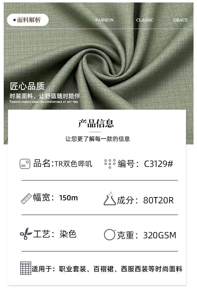 Новая ткань для костюма TR с двухцветным саржевым переплетением, устойчивость к сминанию