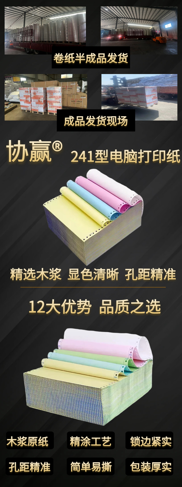 Основная зона продаж Pin-type computer printing paper, three copies of the whole sheet, divided into two equal parts and three equal parts, delivery note 241-3 voucher paper