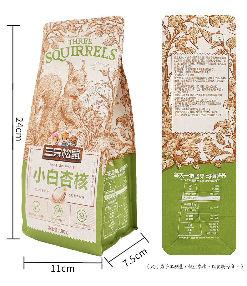 ![]() | Three squirrels xiaobai xing 100gx1 bag | ¥7.5 / ≈ 90 ₽ | 9841 | 5653172345065 | |