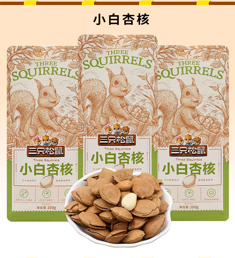 ![]() | Three squirrels xiaobai xing 100gx3 bags | ¥19.5 / ≈ 235 ₽ | 9985 | 5653172345067 | |