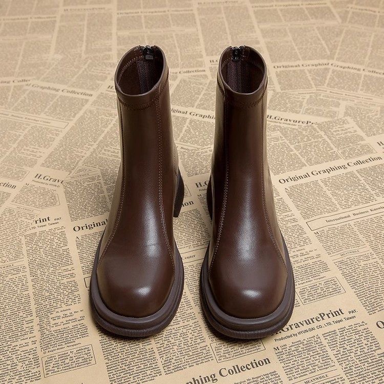 Мягкие кожаные короткие ботинки осень-зима британский стиль 2025 супер популярные уличные ботинки хлопковые удобные и износостойкие короткие теплые ботинки для женщин