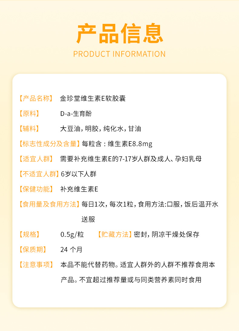 Название продукта Jinzhen tang brand vitamin e soft capsules