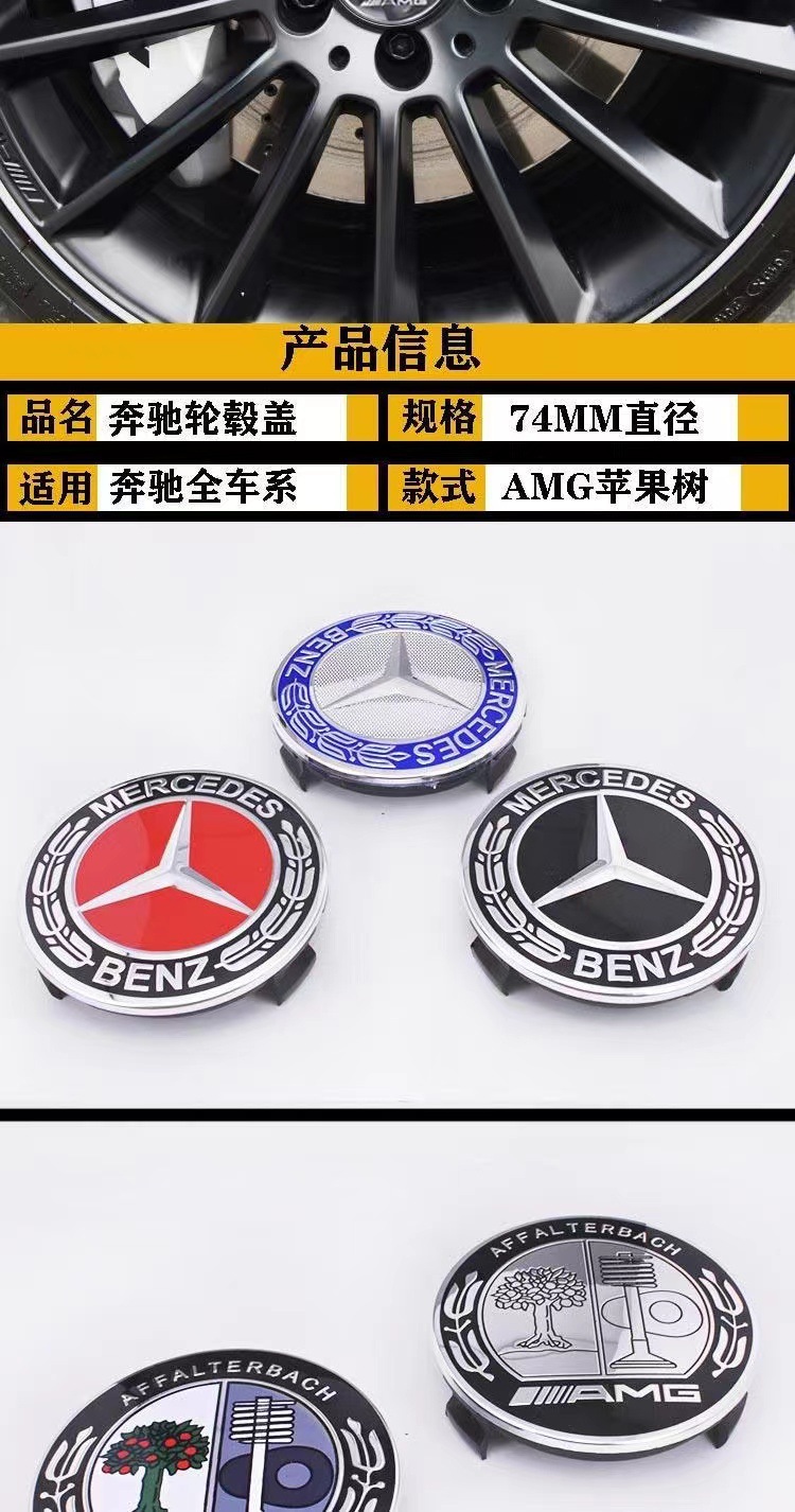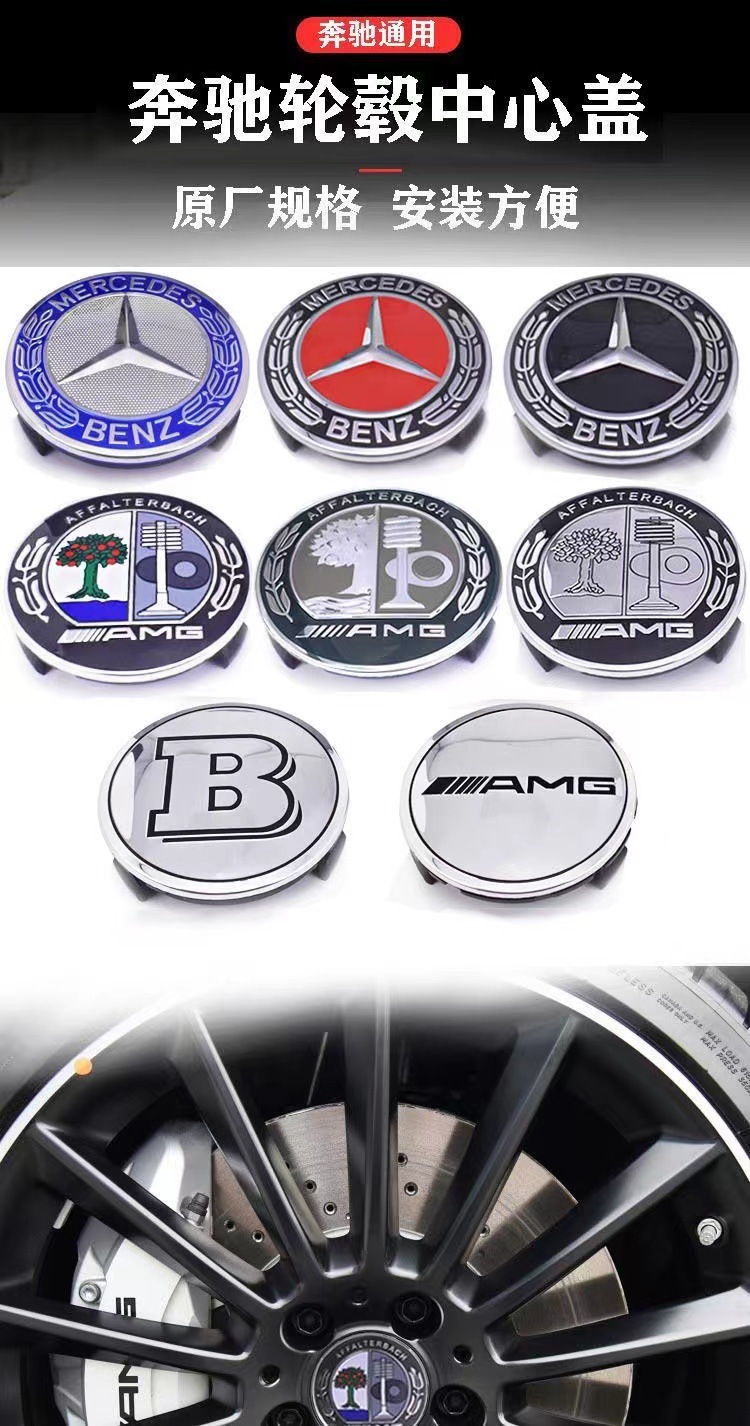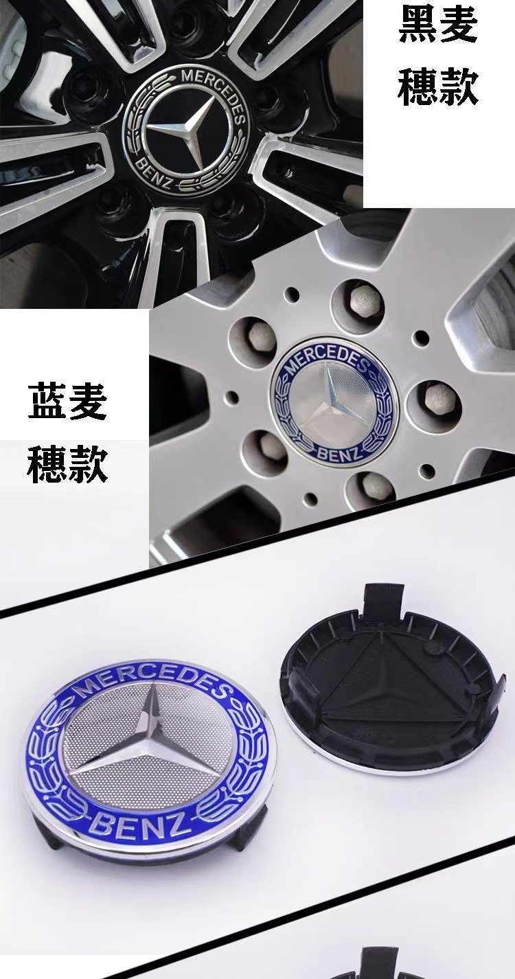 适用于奔驰轮毂盖 75mm奔驰全车系改装轮毂盖 黑色银色麦穗中心盖
