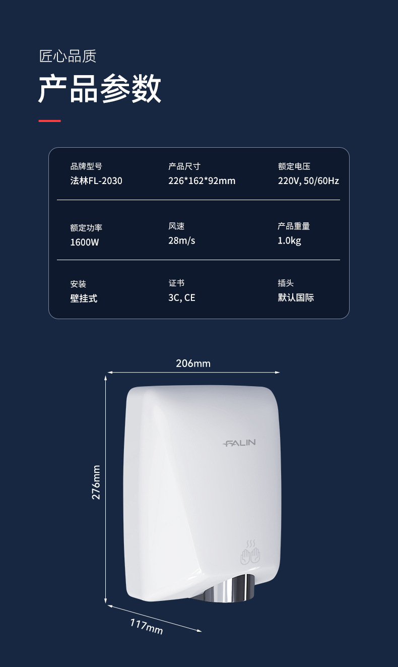 Сушитель для рук Falin с управлением температурой индукционный коммерческий сушитель для общественных туалетов 2030