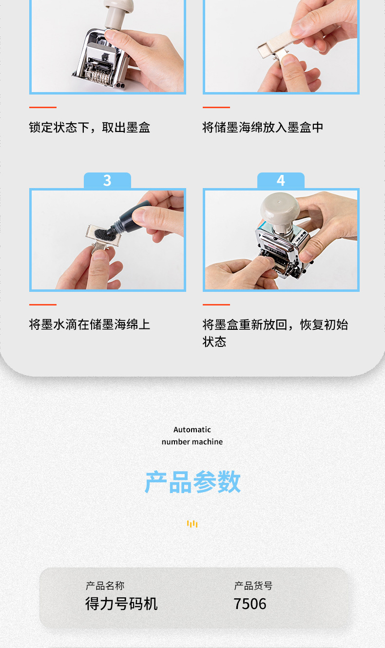 Deli 7506 Автоматическая номерная машина с шестизначным номером Регулируемая дата Цифровая печать
