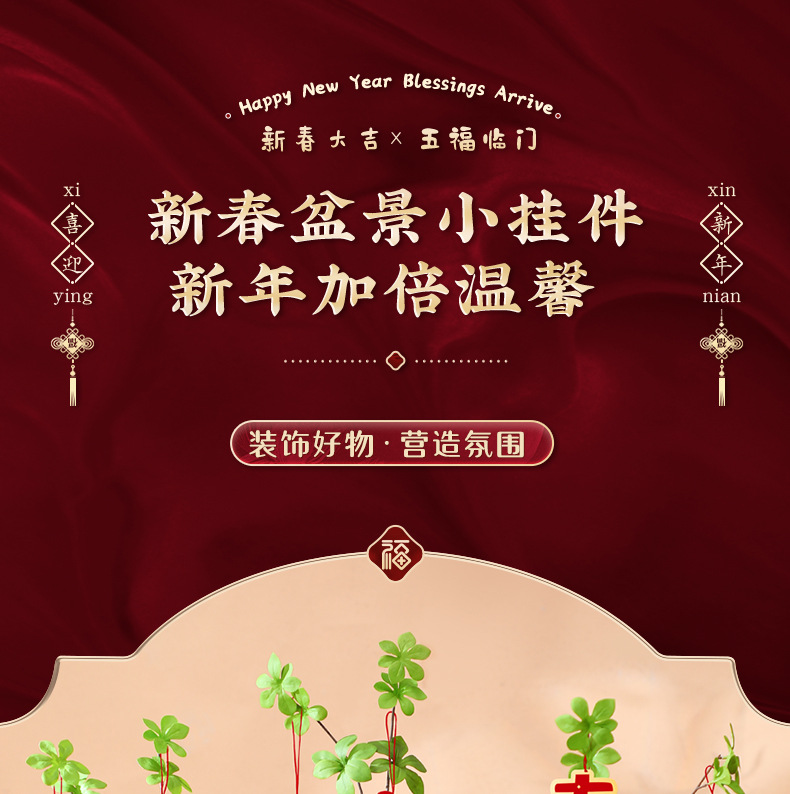Маленькие подвески на Новый год 2026, бонсай, новогодние украшения, денежное дерево, зеленые растения, сценическое оформление, декоративные подвесные ornaments