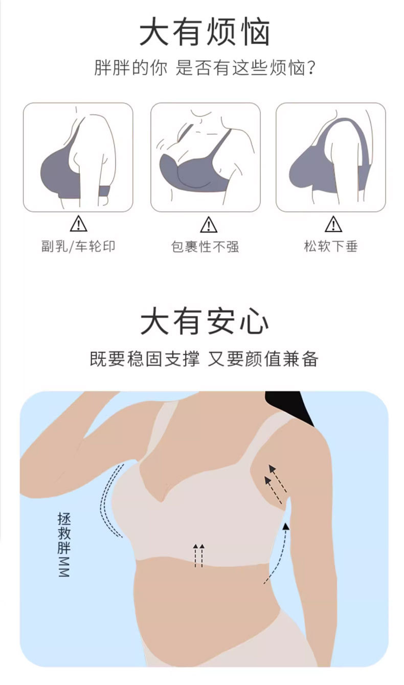Белье большого размера для женщин с большой грудью, против провисания, пуш-ап, дышащее, бесшовное, бюстгальтер для полных девушек оптом